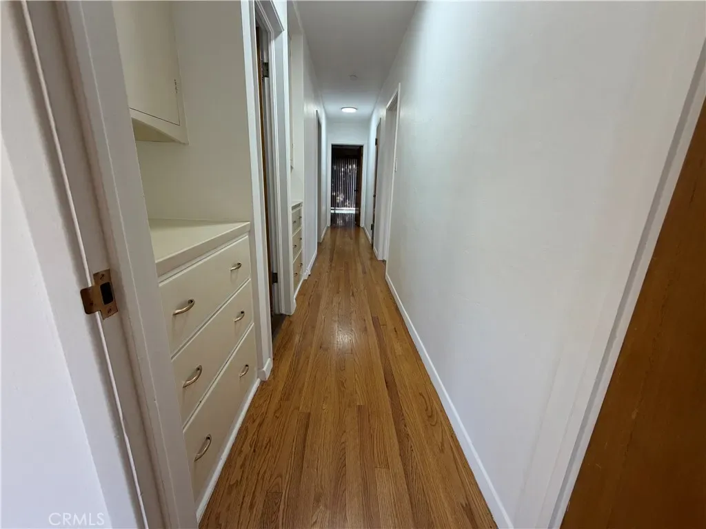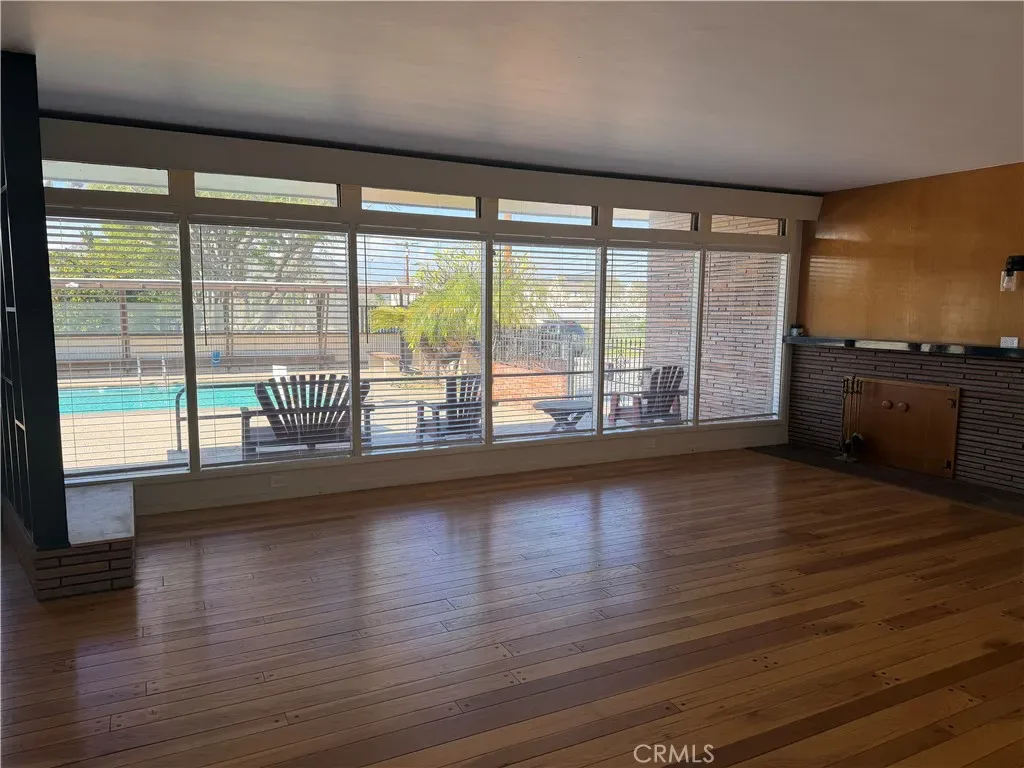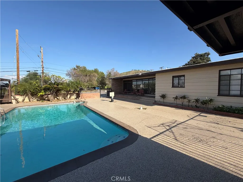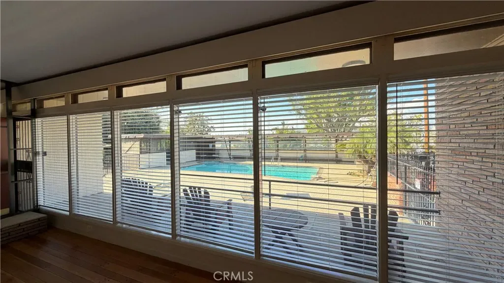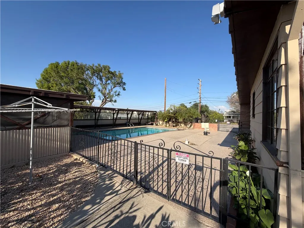 MID-CENTURY POOL HOME WITH BASEMENT – Welcome to this 1947 mid-century charmer that blends timeless character with thoughtful updates. This 3-bedroom, 2-bath home offers incredible architectural details, a finished basement, and a resort-style backyard with pool and spa. Freshly painted throughout, the home retains its original mid-century vibe with hardwood flooring, floor-to-ceiling windows overlooking the pool, and a classic fireplace mantel anchoring the spacious living room. Pocket doors lead to a separate formal dining room featuring built-in cabinetry perfect for displaying your favorite pieces. The updated kitchen includes a stove range, microwave, vinyl flooring, freshly painted cabinetry with new hardware, and pull-out drawers. A cozy breakfast nook just off the kitchen offers serene garden and pool views—perfect for your morning coffee. Each bedroom features custom-built closets that honor the home’s mid-century style, along with additional hallway storage cabinets. The front bedroom includes a charming built-in vanity and mirror. The primary suite showcases original wood flooring, ceiling fan, custom closet with pull-out drawers, and direct access to the side yard via sliding glass door with ramp access. The primary bath offers dual vanities and a spacious walk-in shower. The hallway bathroom maintains its original pink tile vanity, separate soaking tub, and walk-in shower—true vintage charm. Just off the dining room, step down into a finished basement complete with a built-in bar—ideal for entertaining, game nights, or a media room. Floor-to-ceiling cabinetry provides abundant storage. Outdoor living is equally impressive. The inviting front porch overlooks the large pool and spa with generous bench seating. The fully landscaped yard features orange trees, plumeria trees, birds of paradise, a large shade tree, patio furniture, and a covered gazebo area—creating a private, peaceful retreat. The laundry room is conveniently located adjacent to the pool area. A rare opportunity to lease a true mid-century gem with character, space, and exceptional outdoor living on a private gated lot. Conveniently located near the 91 & 15 freeways, schools, restaurants, shopping and hospital.