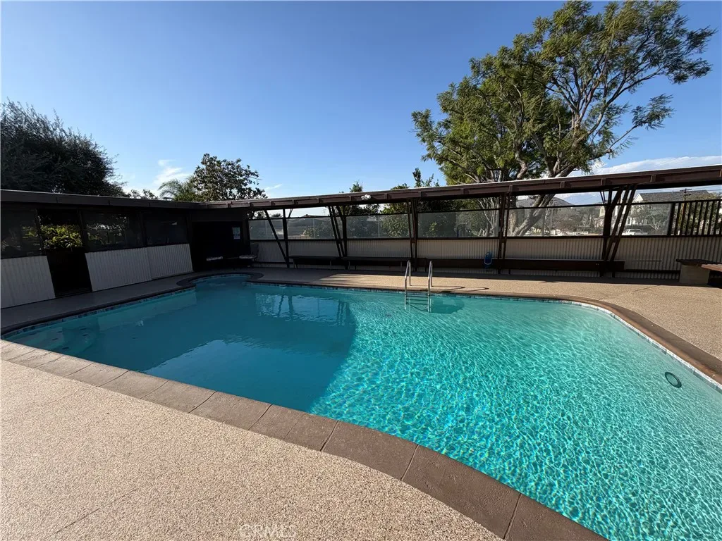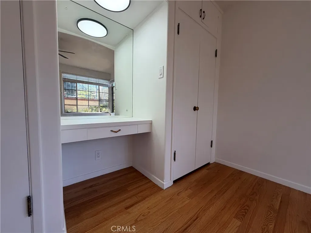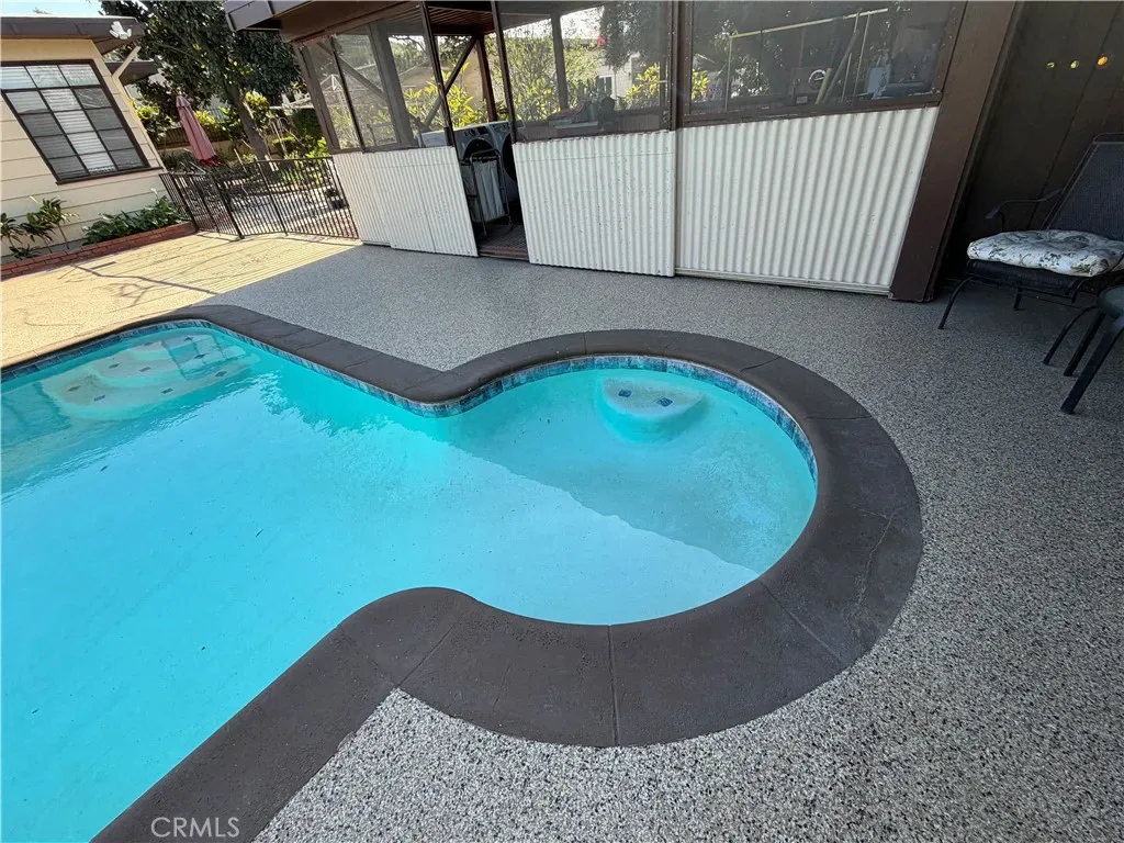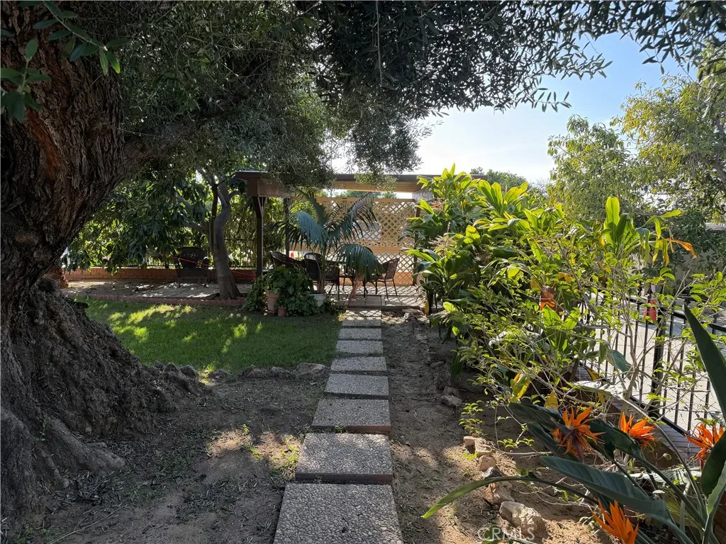 MID-CENTURY POOL HOME WITH BASEMENT – Welcome to this 1947 mid-century charmer that blends timeless character with thoughtful updates. This 3-bedroom, 2-bath home offers incredible architectural details, a finished basement, and a resort-style backyard with pool and spa. Freshly painted throughout, the home retains its original mid-century vibe with hardwood flooring, floor-to-ceiling windows overlooking the pool, and a classic fireplace mantel anchoring the spacious living room. Pocket doors lead to a separate formal dining room featuring built-in cabinetry perfect for displaying your favorite pieces. The updated kitchen includes a stove range, microwave, vinyl flooring, freshly painted cabinetry with new hardware, and pull-out drawers. A cozy breakfast nook just off the kitchen offers serene garden and pool views—perfect for your morning coffee. Each bedroom features custom-built closets that honor the home’s mid-century style, along with additional hallway storage cabinets. The front bedroom includes a charming built-in vanity and mirror. The primary suite showcases original wood flooring, ceiling fan, custom closet with pull-out drawers, and direct access to the side yard via sliding glass door with ramp access. The primary bath offers dual vanities and a spacious walk-in shower. The hallway bathroom maintains its original pink tile vanity, separate soaking tub, and walk-in shower—true vintage charm. Just off the dining room, step down into a finished basement complete with a built-in bar—ideal for entertaining, game nights, or a media room. Floor-to-ceiling cabinetry provides abundant storage. Outdoor living is equally impressive. The inviting front porch overlooks the large pool and spa with generous bench seating. The fully landscaped yard features orange trees, plumeria trees, birds of paradise, a large shade tree, patio furniture, and a covered gazebo area—creating a private, peaceful retreat. The laundry room is conveniently located adjacent to the pool area. A rare opportunity to lease a true mid-century gem with character, space, and exceptional outdoor living on a private gated lot. Conveniently located near the 91 & 15 freeways, schools, restaurants, shopping and hospital.