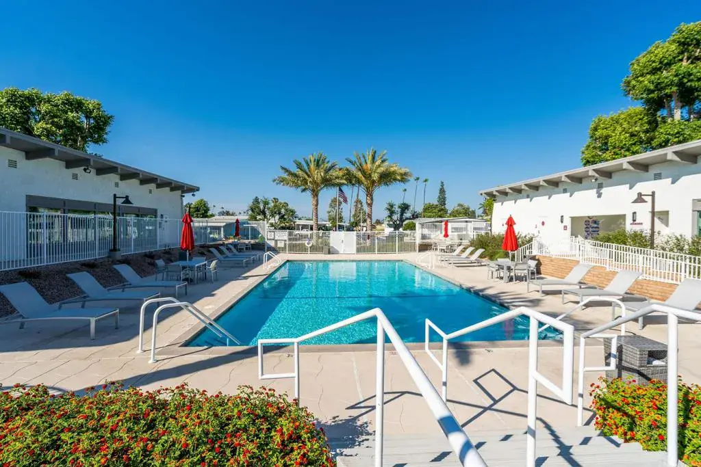LOVELY REMODELED HOME COMPLETE WITH FENCING. OFFERED FOR $229,000. This must-see home sits in a Senior Community for ages 55 and above. Mission Village has many amenities including a heated pool and Jacuzzi, a gym, a laundry room, and a clubhouse for social gatherings. This home has been given a complete make over including a new roof, a new water heater, new decking for the porch, new white vinyl fencing, new washer and dryer, new kitchen appliances, new cabinets for both the kitchen and baths, new vinyl laminate flooring all throughout the home, plus more. It is in a great location, just across the street from the clubhouse. The monthly space rent here is 1,457.00. If you are looking for a nice relaxing Senior home that is move in ready, you do not need to look any further. This home is for you!!