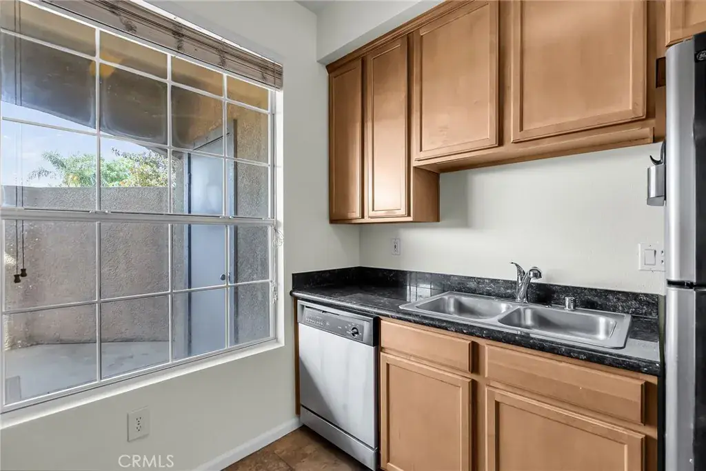 Canyon Crest – This first-floor condo in the desirable Sonata community is move-in ready with fresh paint and new carpet. Just steps from the community greenbelt, the home welcomes you into a bright and airy living room that opens to a private, gated courtyard patio. The upgraded galley-style kitchen features granite countertops, abundant cabinetry, stainless steel appliances, and travertine flooring, with an adjacent dining nook that completes the main living area.The spacious primary bedroom is filled with natural light and offers two generously proportioned closets. A centrally located full bathroom includes travertine flooring, granite countertops, and a refinished tub enclosure. Community amenities include a swimming pool, walking paths, greenbelts, and a clubhouse. Enjoy the convenience of being minutes from Canyon Crest Town Center, the University of California, Riverside, Sycamore Canyon Wilderness Park, and easy access to major freeways.
