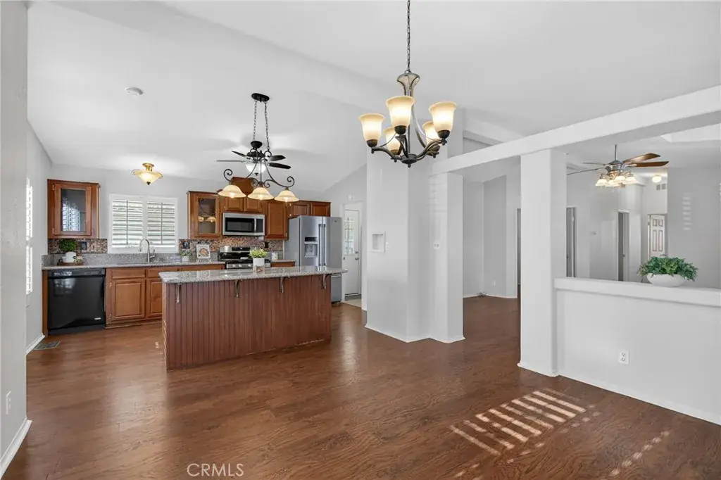 Step inside the bright and open floor plan accented by vaulted ceilings and large windows filling the home with soft natural light. Beautiful laminate plank flooring flows throughout the living area creating an inviting setting for entertaining or everyday living.