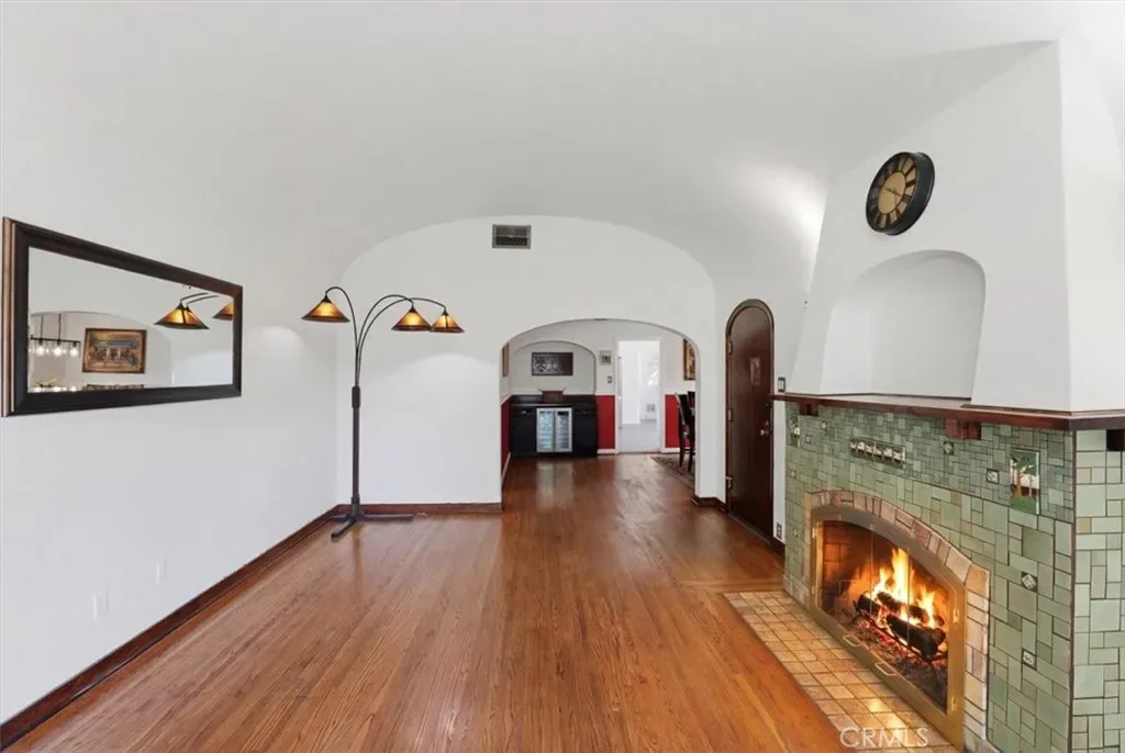 The inviting living area is anchored by a stunning fireplace with custom handmade tile, thoughtfully designed to honor the home’s original era. All three bedrooms offer spacious walk-in closets.