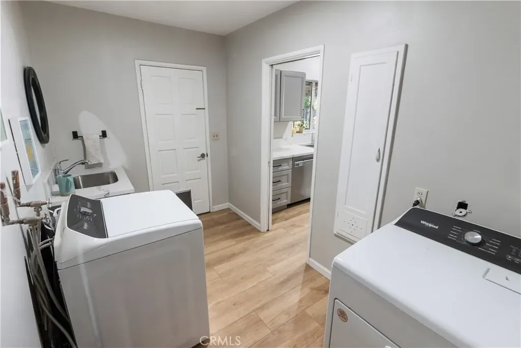 WOOD STREETS – Located on a tree-lined street in one of Riverside’s most loved neighborhoods, this inviting mid-century, single-story home offers 1,258 sqft with 2 bedrooms and 2 bathrooms on a 9,148 sqft lot. Loads of natural light and spacious living spaces make this home especially warm and welcoming. Beautifully refinished original hardwood floors line the large family room with a wood burning fireplace and extend into the dining room, which offers a double-glass door exit to the backyard. Adjacent to the dining room is a tastefully updated kitchen featuring numerous cabinets with pull-outs and soft-close hardware, beautiful quartz counters, and stainless appliances. Both bedrooms are well-proportioned with generous closet space. The home offers a full bathroom with tub/shower combo as well as an additional half bathroom. The interior is completed by a sizeable utility room which houses washing machine hooks ups, a gas dryer supply, a large utility sink, storage closet and a secondary access to the backyard. An expansive covered patio at the rear of the home offers a welcoming lounging and entertaining setting. The oversized and fully-fenced backyard offers a great space for kids or pets to play, or a potential space for an ADU. Other amenities are numerous and include: newer cost-effective heating and cooling mini-split units, newer plumbing, updated light fixtures and recessed lighting throughout, luxury vinyl plank throughout the kitchen and bathrooms, mature fruit producing citrus trees, irrigated yards, an attached pull-through garage, ample driveway parking and more! A perfect retreat nestled in a quiet, coveted neighborhood that’s conveniently close to everything including shopping, schools, churches, parks, eateries and more! Truly special and a must see! Low taxes! Not in high fire!