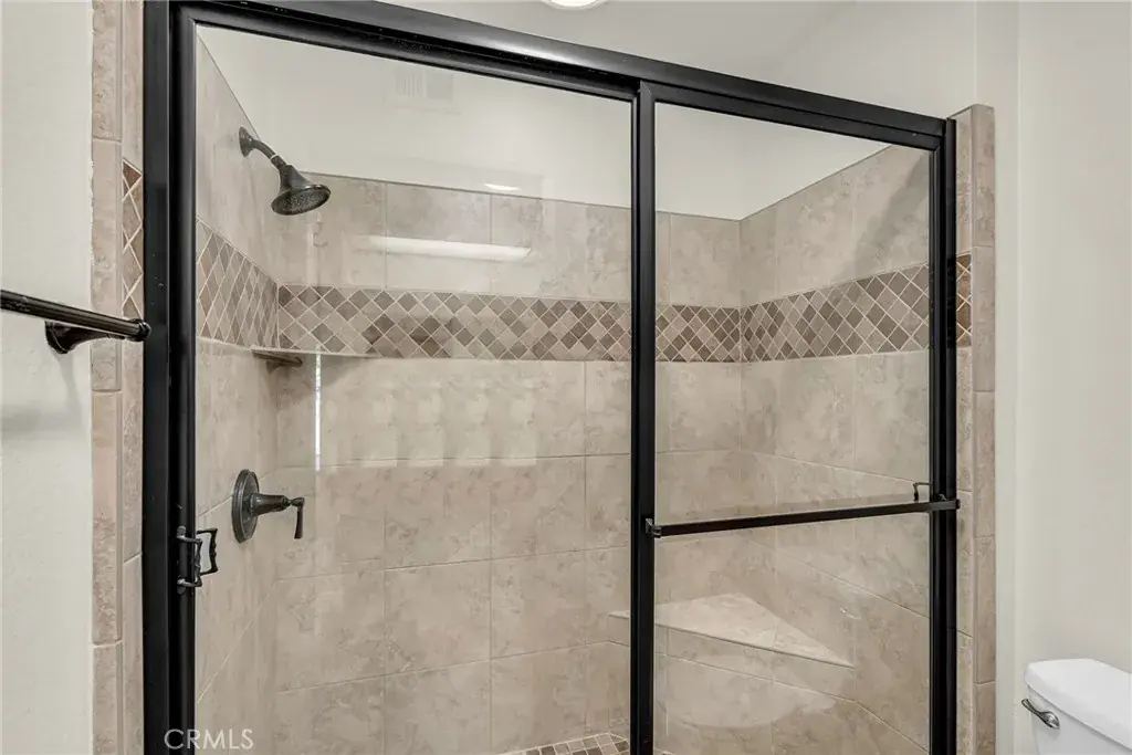 Both bathrooms have been thoughtfully renovated with tall 36 inch cabinetry, quartz counters, stylish fixtures, and recessed lighting for a clean, modern finish. The primary suite features generous closet space and a relaxing view of the greenery outside.