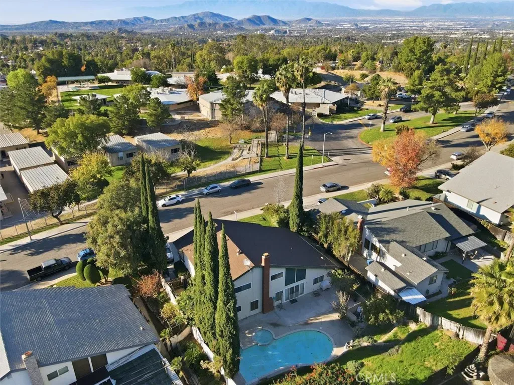 Pool Homes in Canyon Crest don’t come along like this often! This home combines space, light, and a layout that actually makes sense. A double-door entry opens to a vaulted-ceiling living room wrapped in oversized windows. This 4-bedroom, 3-bath layout understands real life. There’s one bedroom and a full bath downstairs (guests, office, multigenerational living, choose your adventure!), plus dual bath access for the pool, so wet feet don’t have to parade through the house. Separate family and living rooms, a gas fireplace, and a wet bar mean entertaining is not just possible, it’s encouraged! Slide open the doors and step straight into the in-ground pool —weekends just got promoted.