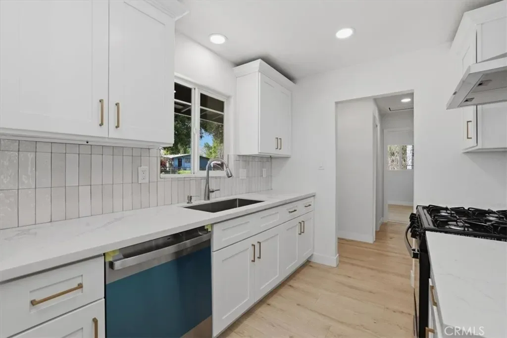 Welcome to 6490 Hillside Ave. This beautifully remodeled 3-bedroom, 2-bath home spans approximately 984 square feet on a manageable lot. Step inside to discover a fresh, bright interior featuring sleek white shaker-style cabinetry, elegant gold-accented hardware, pristine quartz countertops, and contemporary flooring throughout the main living areas and kitchen.