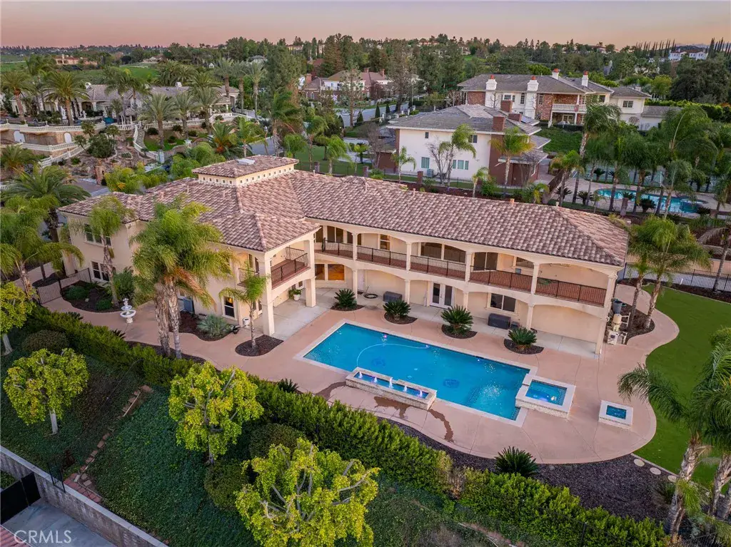 Perched on a terraced homesite, this custom Mediterranean-style villa exudes grandeur and elegance. Step through the soaring two-story foyer, flanked by dual staircases, into expansive living spaces designed to impress. The formal living room features a cozy fireplace, while the formal dining room sets the stage for memorable gatherings. A unique two-level study, complete with a spiral staircase and its own fireplace, offers an inspiring retreat.