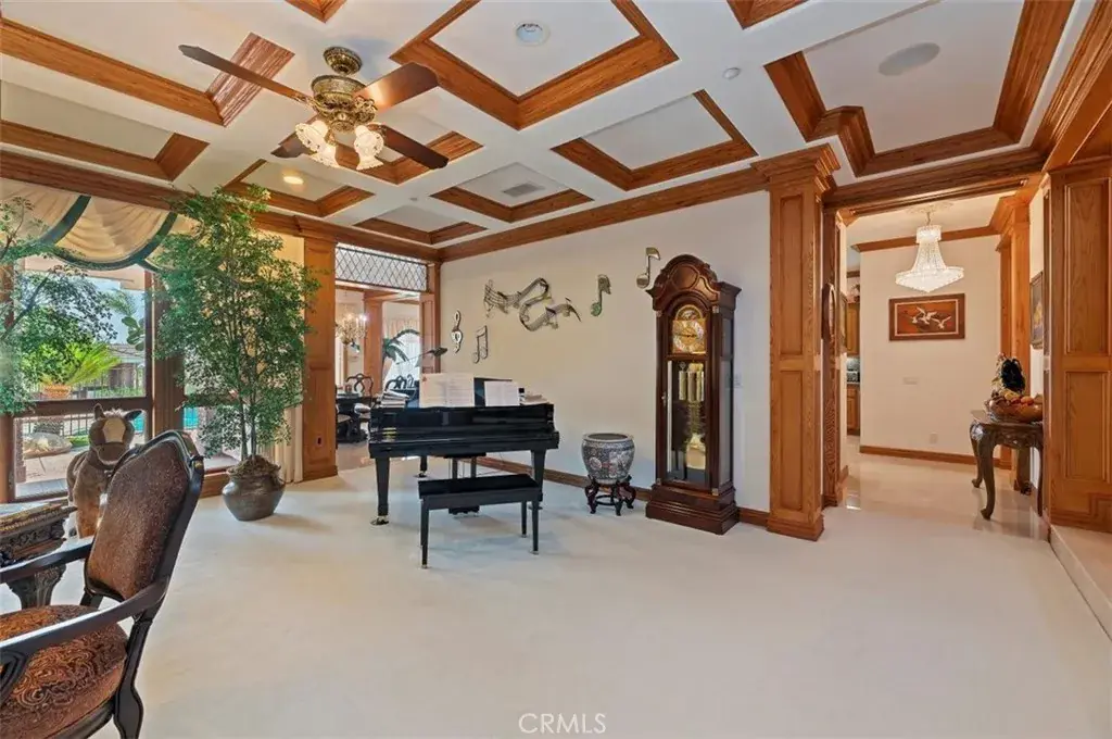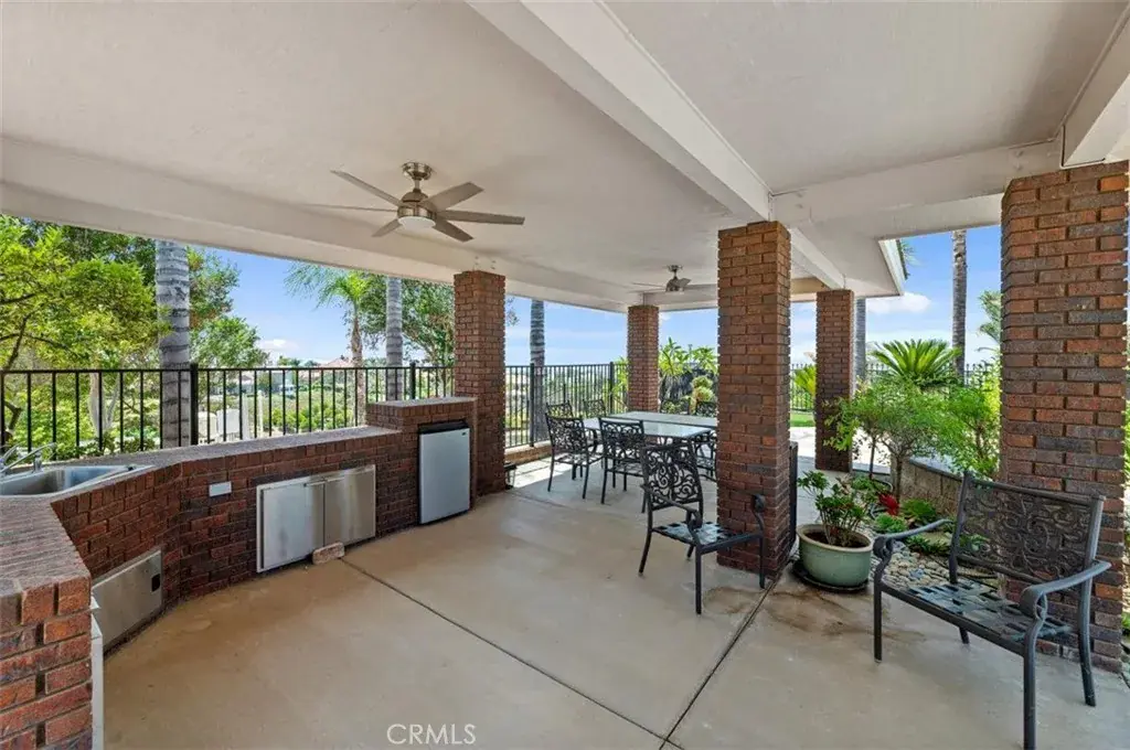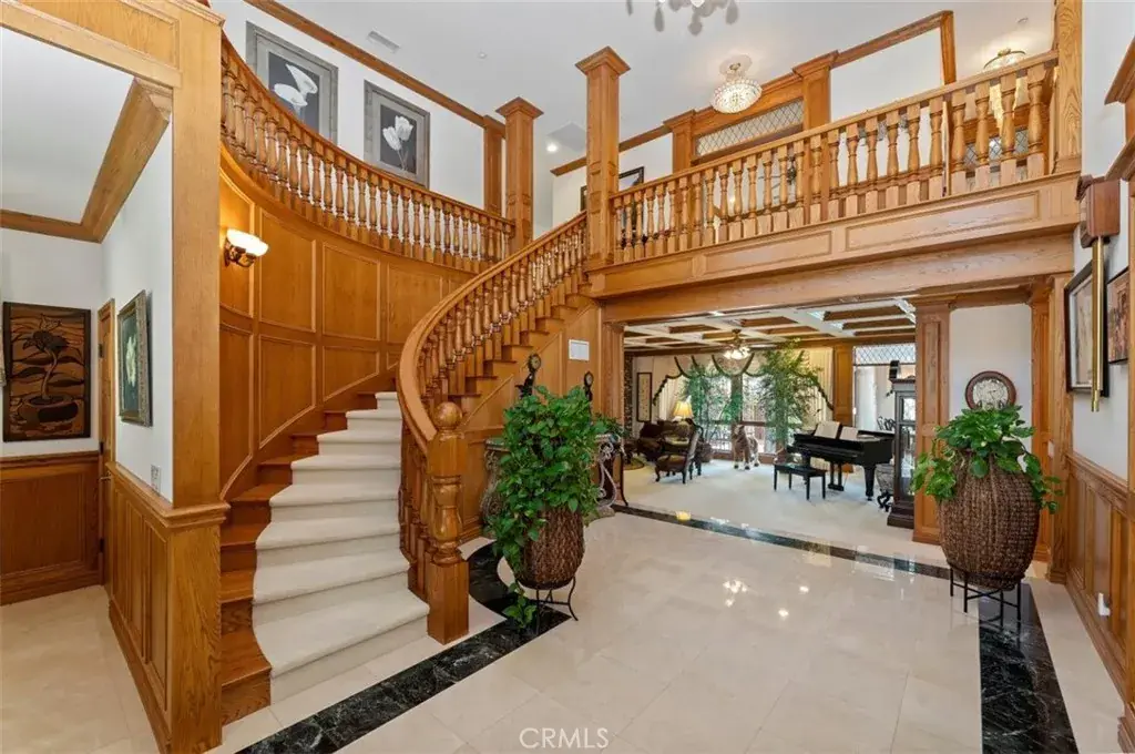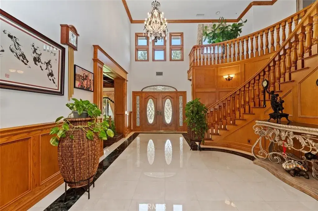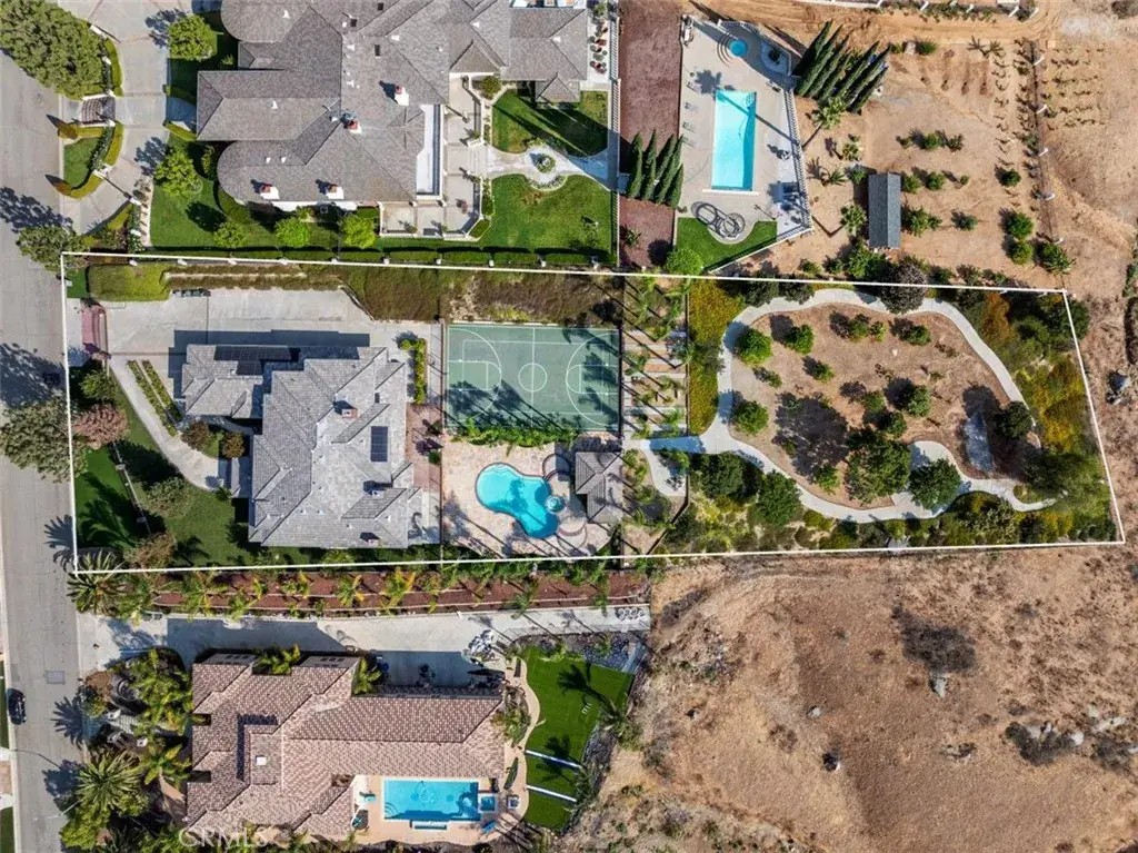 Located within the prestigious Wyndham Hills Estates of Alessandro Heights, this custom-built traditional brick estate is set on over an acre of beautifully landscaped grounds and offers more than 5,800 sq ft of refined living space. Lovingly maintained by its original owners, the home reflects pride of ownership and a legacy of family living. Master masonry defines the residence with hand-laid and hand-cut brickwork throughout the exterior and interior, including intricately beveled fireplaces that anchor the formal living spaces with character and warmth. Rich custom oak millwork, coffered ceilings, and beveled glass accents on the private study doors and kitchen cabinetry highlight the thoughtful craftsmanship found throughout. A dramatic two-story foyer with marble floors and a sweeping curved staircase creates an elegant architectural centerpiece. Formal living and dining rooms flow seamlessly into the expansive kitchen featuring granite countertops, custom cabinetry, generous prep space, and open connection to the family room, creating a welcoming environment for everyday living and entertaining. A private main-floor study with built-ins, a fireplace, and backyard access offers a peaceful workspace or reading retreat. Upstairs, a versatile flex room provides endless possibilities as a home office, gym, additional study, or a fifth bedroom. Nearly every bedroom includes an en-suite bath, offering comfort and privacy throughout. The primary retreat features a welcoming sitting room, fireplace, his-and-hers walk-in closets and toilets, spa-style bath, private balcony overlooking the resort-style grounds, and a secondary staircase with direct access to the main living areas. Designed with both beauty and function in mind, the home includes a spacious utility room with direct access to the finished workshop bay, ideal for a custom mudroom, dog wash station, or organized storage hub. Step outdoors to enjoy a private resort-style setting with a sparkling pool and spa, basketball court, cabana, low-maintenance turf, mature fruit orchard with drip irrigation. Whether hosting summer gatherings, or enjoying evenings under the stars, this backyard was designed for unforgettable moments. Partial city and mountain views enhance the serene setting. Additional highlights include paid solar and a five-car garage, ideal for a small car collection, hobbies, or extra storage. Truly a wonderful place to call home in one of Riverside’s most desirable hillside communities.