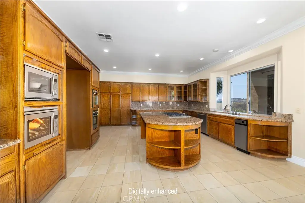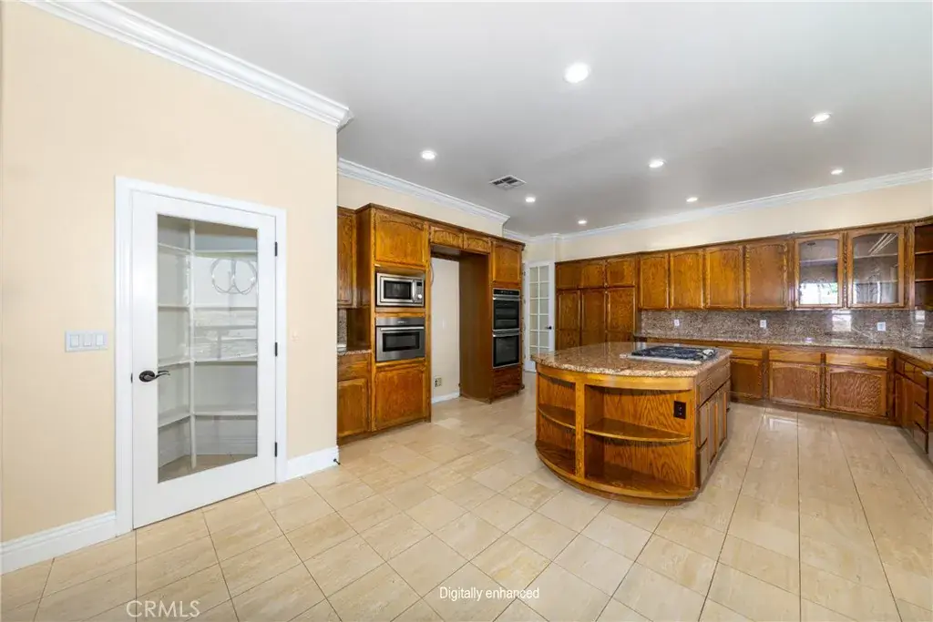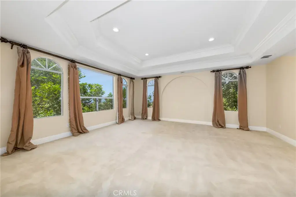 Welcome to the luxury Hillcreast Estates community! This is a beautiful, Meditterranean architutual design with 4 bedroom and 51/2 bathrooms. Entryway is tile flooring with spiral staircase to second level. Main level floor features one bedroom and 1 and 1/2 baths, formal living room with fireplace. Formal dining room features a fireplace and wet bar. Large kitchen with double ovens, double microwaves, granite countertops that connect with the living room. Large windows overlook the swimming pool and hills. Upstairs features loft with a wet bar, large balcony and 2 bedrooms each with full baths. Master bedroom includes large open floor plan with fireplace, jaczzi tub, wet bar, double sinks, private sauna and large balcony. Long private driveway with electronic security gate and 3 car garage. The backyard features private swimming pool, jacuzzi, fireplace and barbecue island. This home also comes with security camera’s both inside and out. Very private and quiet neighborhood that is close to shopping centers.