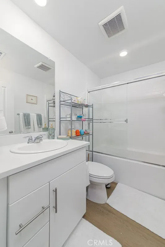 ADDITIONAL HIGHLIGHTS: upgraded wood-look vinyl flooring, granite kitchen countertops, stainless steel appliances, recessed lighting, ceiling fans, and plantation shutters. The enclosed front patio provides an inviting outdoor setting, ideal for relaxing or entertaining. The property also includes 1 attached garage.