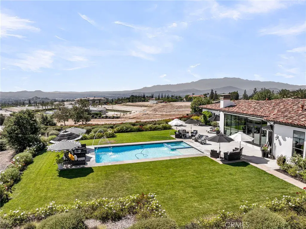 ALESSANDRO HEIGHTS- MONTECITO ESTATES- Entering the gates of this exclusive gate guarded community, you are greeted by pastoral mature Olive trees, white roses and city light/mountain views as far as the eye can see! The soaring foyer of this impressive residence lures you into the elegant entry gallery with floor to ceiling glass windows affording views to the central courtyard with its fireplace and entertaining patio, also providing access to the separate guest suite as well as the home theater/self-contained ADU above. The grand room moves seamlessly to the courtyard and the sunroom through retractable glass walls creating the ideal indoor/outdoor entertaining space all the way out to the pool. The kitchen offers top-tier designer appliances including 3 ovens, commercial range with pot filler, 2 dishwashers and a Butler’s Pantry with built-in Miele coffee/espresso maker. Two massive islands provide ample meal preparation and serving surfaces on the pristine white quartzite counter-tops; Separate wine storage room and large walk-in pantry. The separate dining room accommodates any large party with stunning details and views of the surrounding hills; Separate family room/music room with views of the pool and city lights with soaring beamed ceiling and elegant fireplace; An office/library is located off the entry gallery affording views of the courtyard as well as the city lights. The primary bedroom suite is sequestered and contains the luxurious bedroom area with sitting area and fireplace, opulent spa-like white marble bath with walk-in shower, free-standing tub and dual vanities; Dual “boutique style” walk-in closets designed to insure optimal organization of all your clothing shoes and accessories in their designated spaces. The additional 4 large bedrooms for a total of 5 all have their own distinct ensuite baths and walk-in closets. The upper level contains the home theater with seating for 10 as well as a fully self-contained ADU with kitchenette, bedroom and spacious bath. Massive indoor laundry accommodates dual launder sets and loads of storage. The grounds perfectly encompass the residence with pristine landscaping providing ample privacy without impeding the incredible views enjoyed from the site! The classic pool with spa and water feature is surrounded by expansive decking and lawns evoking a rich European inspired scene which is additionally complimented by the private orchard of Avocado, Lemon and Naval Orange Trees!