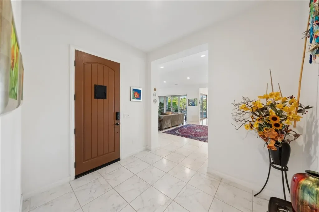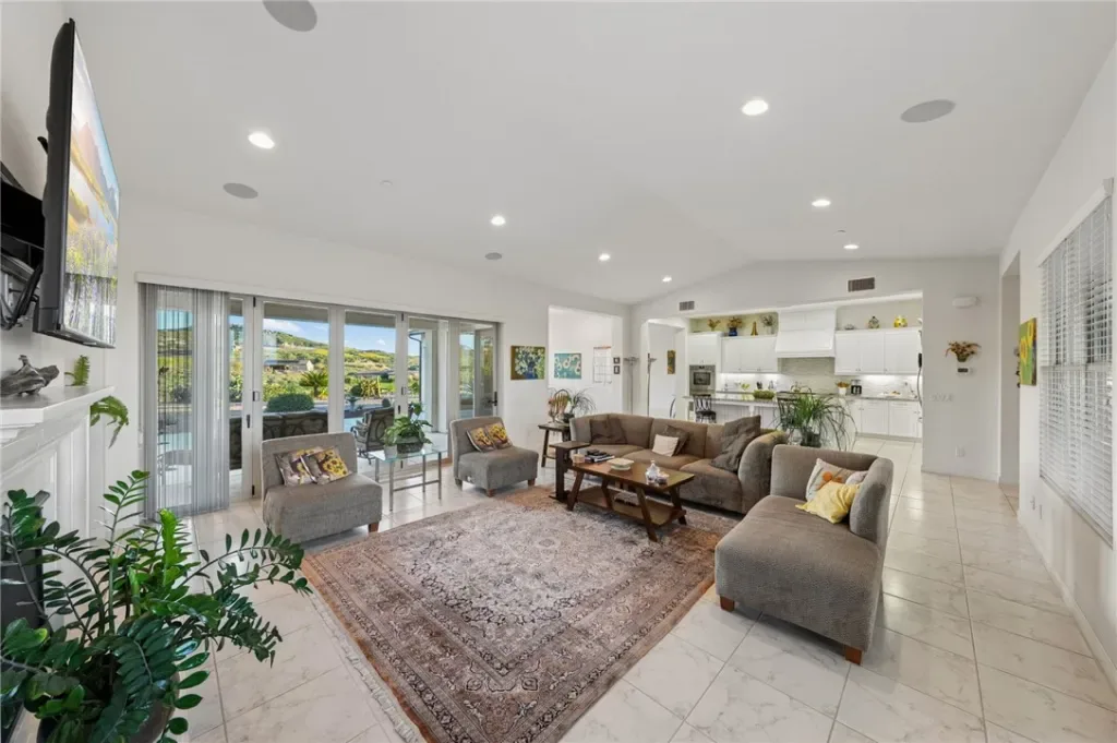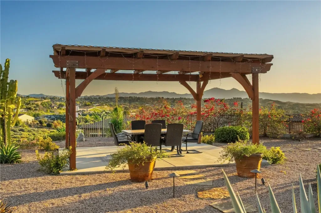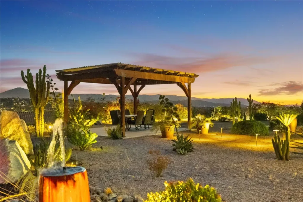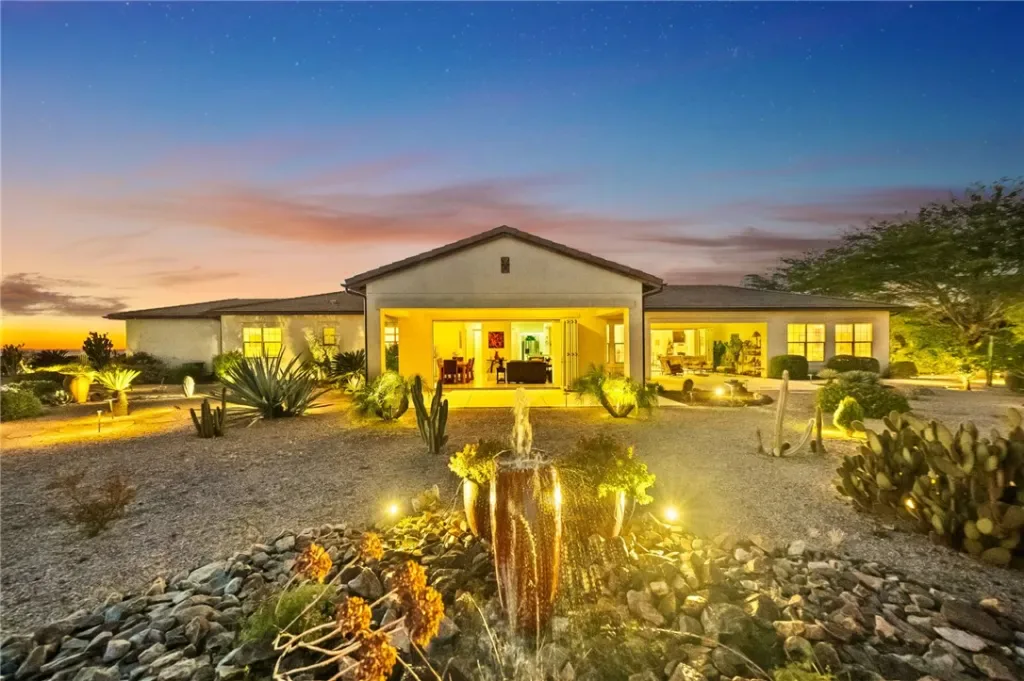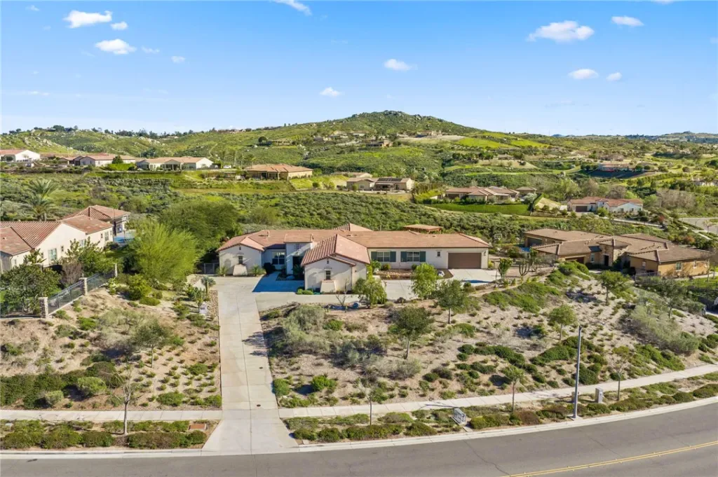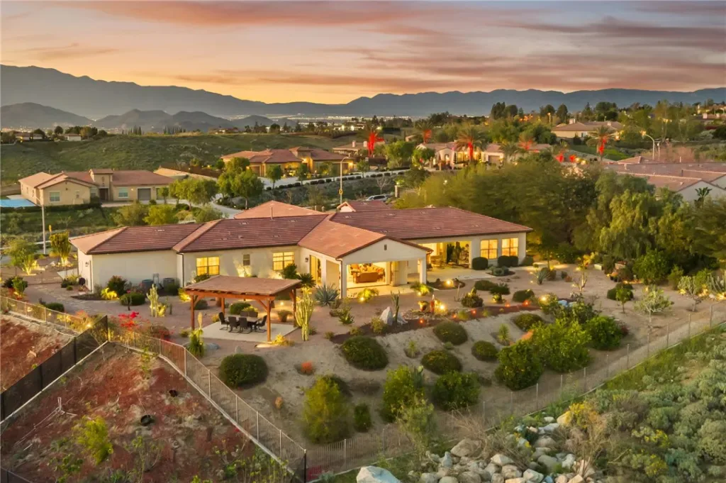 Tucked into a peaceful, private setting with sweeping views, this exceptional single-story residence offers a rare blend of luxury, comfort, and serenity. Surrounded by multi-million dollar homes, the property spans approximately one acre of beautifully landscaped grounds, creating an atmosphere that feels both refined and wonderfully secluded. Thoughtfully designed for elegant everyday living and effortless entertaining, the spacious interior is filled with natural light and an easy sense of openness. Accordion doors create a seamless transition to the covered California room, offering the kind of indoor-outdoor lifestyle that defines Southern California living. Whether hosting a lively gathering or enjoying a quiet evening at home, this is an entertainer’s dream. The kitchen opens gracefully to the main living area, making the space feel inviting, connected, and ideal for both casual living and special occasions. Generously sized bedrooms provide comfort and flexibility, while the primary suite serves as a peaceful private retreat designed for rest and renewal. Outside, the grounds are beautifully maintained with mature fruit trees, attractive low-maintenance landscaping, and expansive space to relax, entertain, and take in the natural beauty of the setting. From morning coffee with a view to evenings spent watching the light settle over the hills, every part of this property invites you to slow down and enjoy. A 3-car garage, whole house water filtration system with water softener, low taxes, convenient access to the 91, 60, and 215 freeways, and nearby farm-fresh produce stands add everyday practicality to this truly remarkable home. Private, picturesque, and beautifully positioned, this is a property that leaves a lasting impression.
