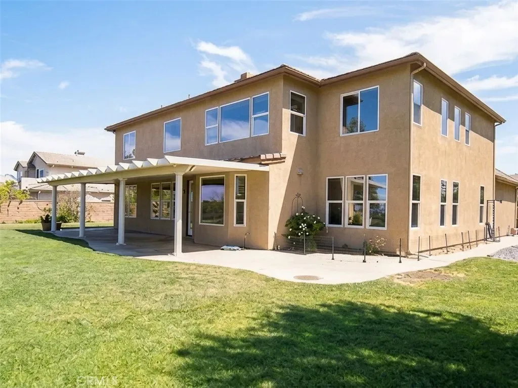 space.The backyard features a covered patio, ideal for outdoor dining or relaxing while