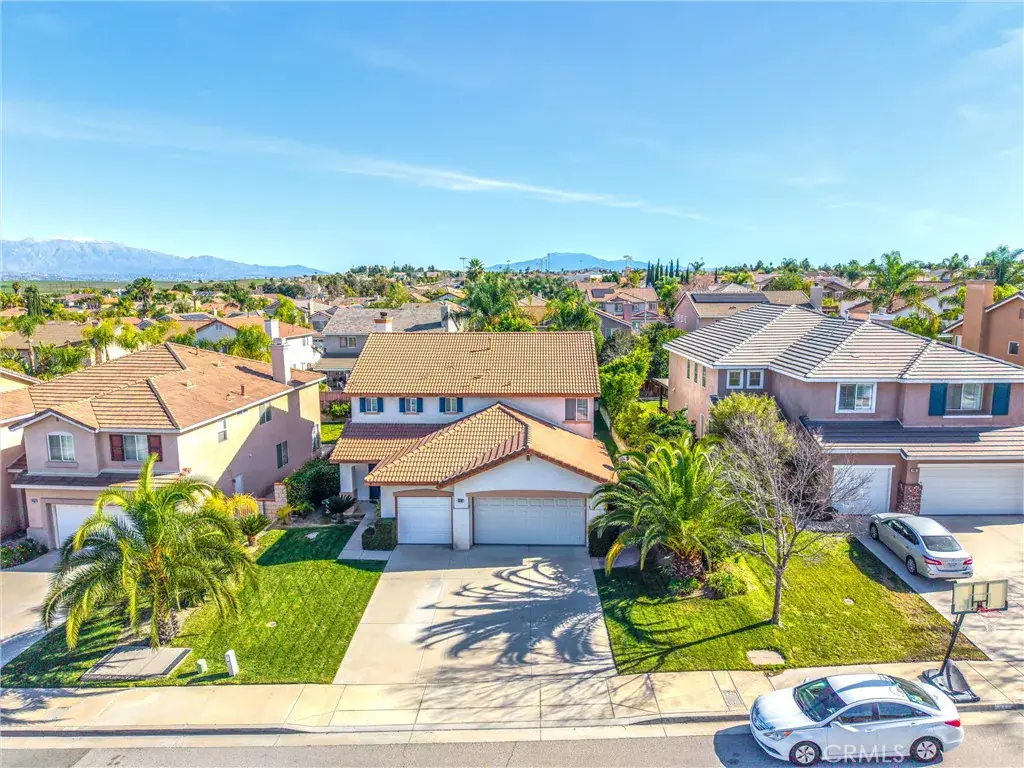 Extended covered patio and large back lawn perfect for entertaining, pets and family! Spacious 4 bed, 3 bath home available in the popular and family-friendly Orangecrest, Riverside. Double-door entry opens onto cathedral ceilings and a balcony overlooking the family room. Large kitchen open to the living room with plenty of space for an additional table plus a full separate, formal dining room. Full downstairs bathroom with gold-rimmed glass tub-in-shower. Downstairs bedroom was configured as an office by builder but can easily be converted to a bedroom for added sleeping space. Upstairs primary ensuite boasts a large double wide vanity with separate sinks and counters, a walk-in shower, separate indoor spa tub, and two massive walk-in closets. Two extra bedrooms with built-in closets and a shared bathroom with double vanity and a classic tub-in-shower. Upstairs laundry room for easy access. Plenty of natural lighting throughout the home. Newly installed 5 ton air conditioner with Nest thermostat. Large backyard lot boasts solid patio cover tricked out with built-in lighting and fans plus a custom, built-in BBQ island. Lawn is green and spacious for outdoor entertainment. Home just around the corner from the famous Orange Terrace Park and an easy walking distance from the nearest elementary school. Large three-car garage for lots of storage space plus three additional parking spaces on the front driveway. No HOA and low taxes! Close to all kinds of shopping and dining in all directions!