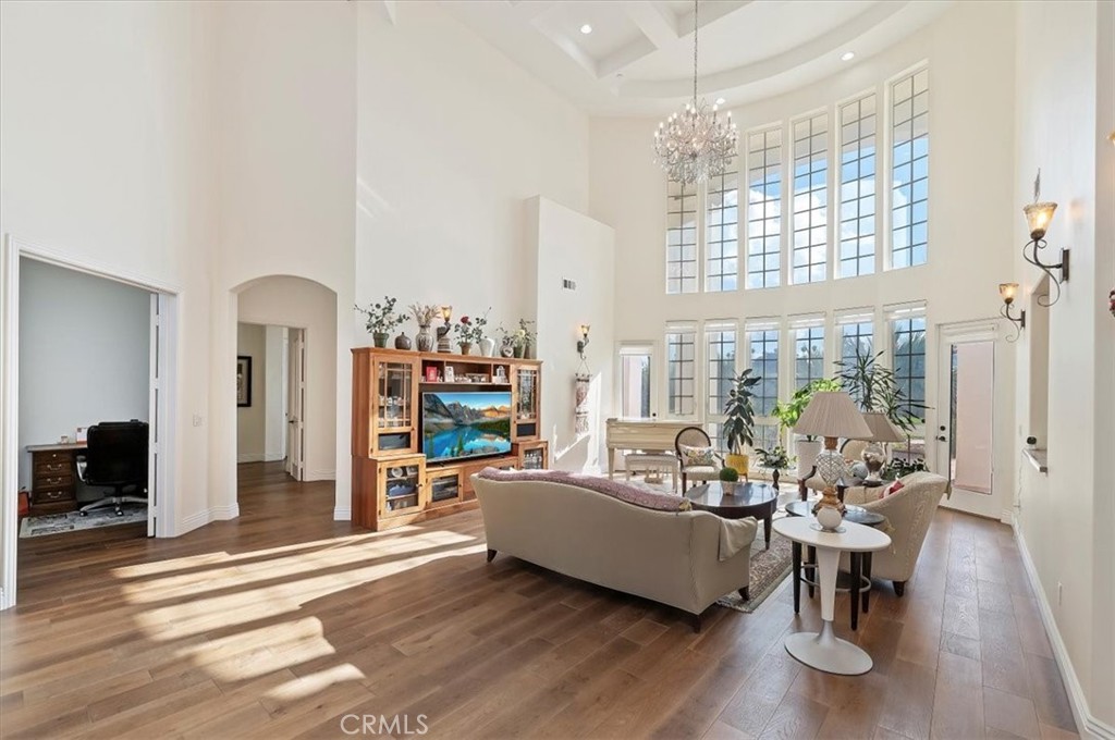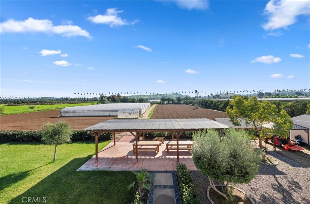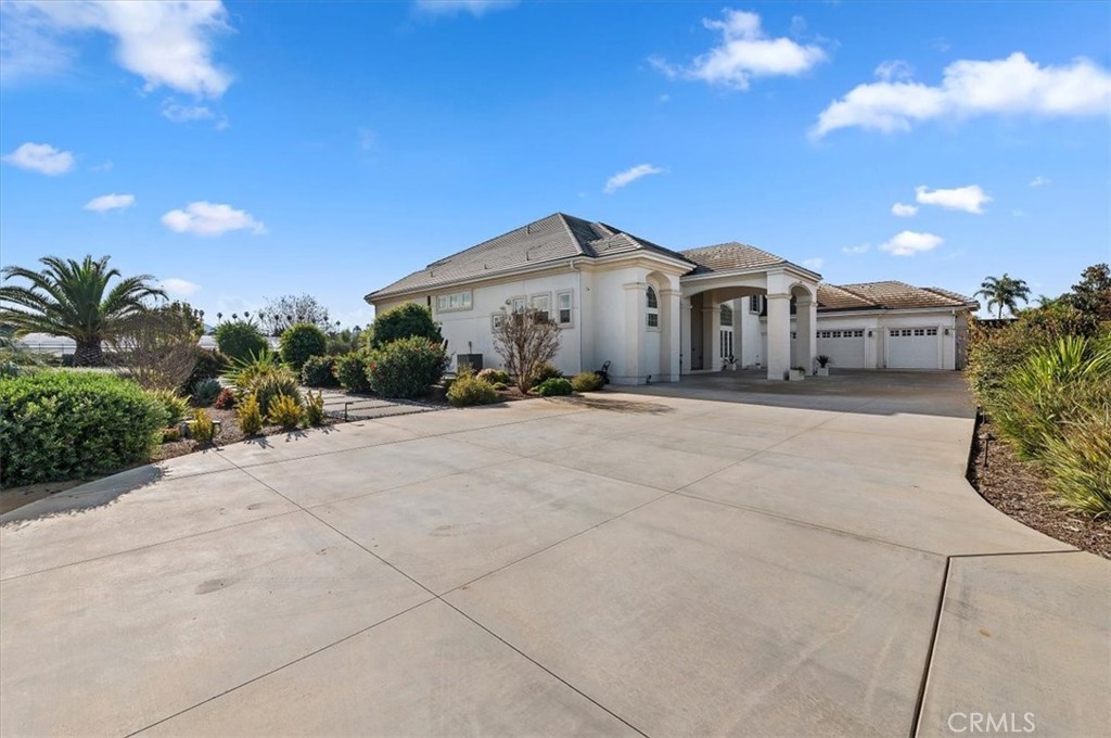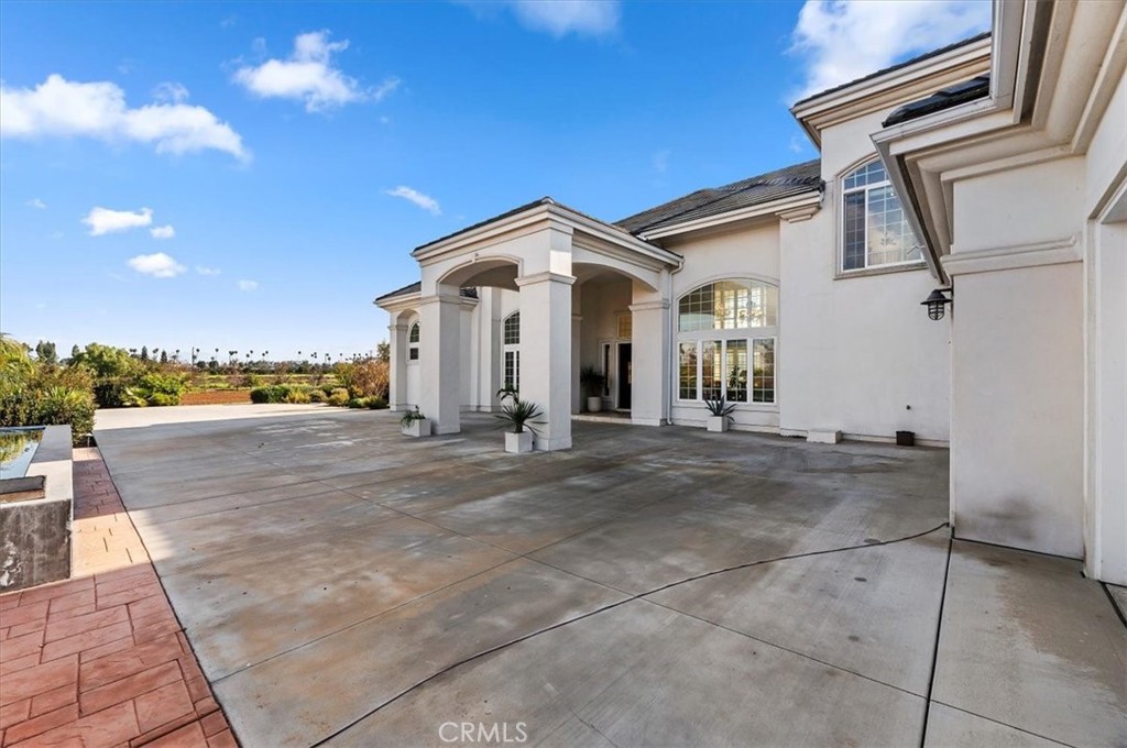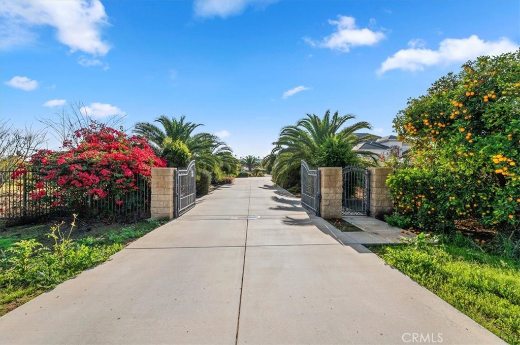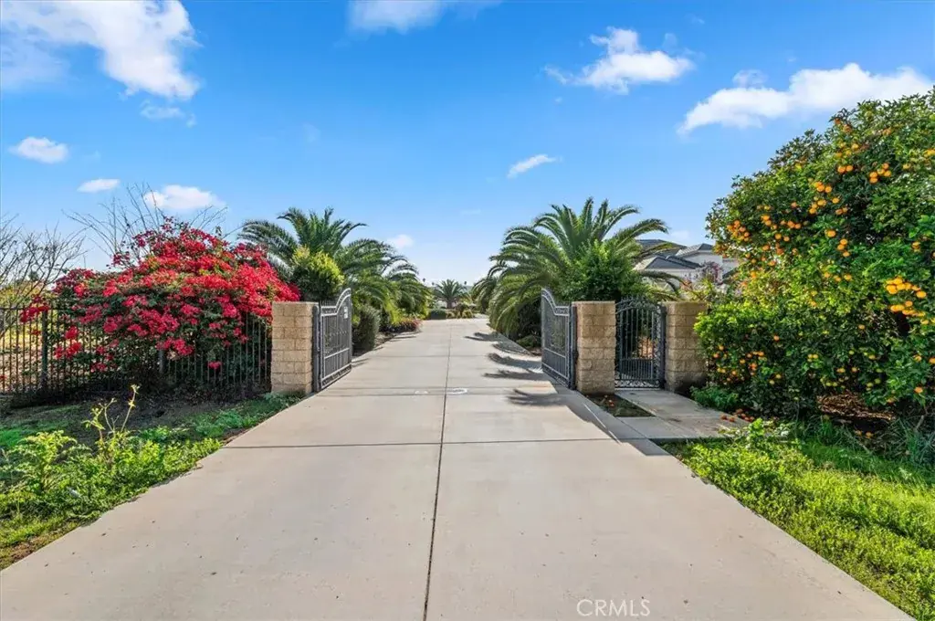 Welcome to an extraordinary gated estate offering privacy, scale, and luxury on approximately 5 acres (with 11 shares of Gage Canal water) in a prime Riverside location. Built in 2015 and thoughtfully designed with exceptional craftsmanship, this stunning residence spans approximately 6,500 square feet and delivers a rare blend of elegance, comfort, and resort-style living. A private gated entry and long driveway lead to the impressive façade, framed by manicured grounds and mature landscaping. The property welcomes you with a tranquil koi pond, setting the tone for the peaceful, estate-like atmosphere throughout. Inside, a dramatic two-story foyer and grand living room showcase soaring cathedral ceilings, abundant natural light, and rich hardwood flooring. The formal living and dining spaces are ideal for entertaining, while the expansive family room flows seamlessly into the chef’s kitchen—featuring quartz countertops, a large center island, high-end appliances, and generous cabinetry. The thoughtfully designed floor plan offers exceptional flexibility. The first level includes three bedrooms, including the luxurious primary suite, multiple full bathrooms, and an additional office or bonus room that can function as a sixth bedroom. Upstairs, you’ll find a massive bonus room and two additional bedrooms—each with its own bathroom and walk-in closet—along with private decks that capture beautiful views of the surrounding property. The primary suite is a true retreat, complete with a spa-inspired bathroom, an expansive walk-in closet, and serene views of the grounds. Throughout the home, you’ll find quality finishes, elegant architectural details, and abundant space for both everyday living and hosting on a grand scale. Outdoors, the estate transforms into a private agricultural oasis. The grounds feature multiple large greenhouses, extensive fruit-bearing trees, including mature orange trees, established irrigation with water stock, and ample open space for gardening, farming, recreation, or expansion. Additional highlights include dual solar systems, a spacious three-car garage, and abundant room for vehicles, equipment, or future amenities. This is a rare opportunity to own a truly special property that offers luxury living, privacy, and functional acreage—all within convenient reach of city amenities.