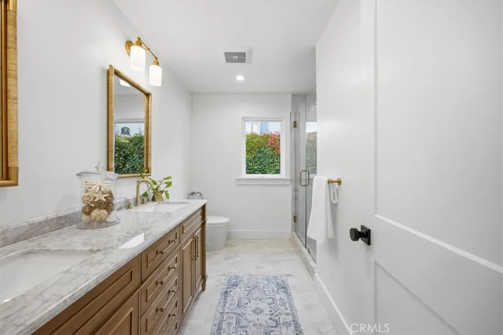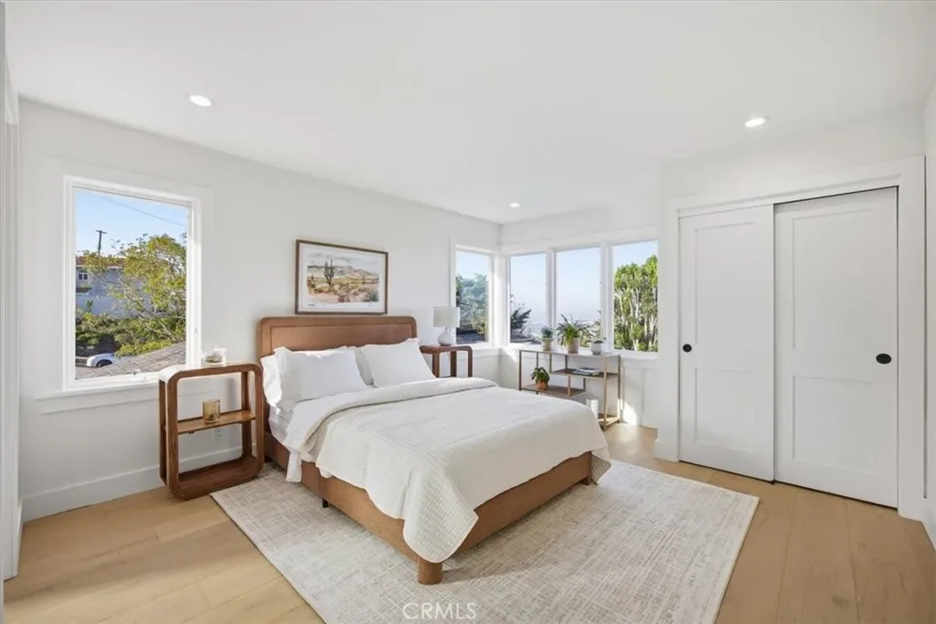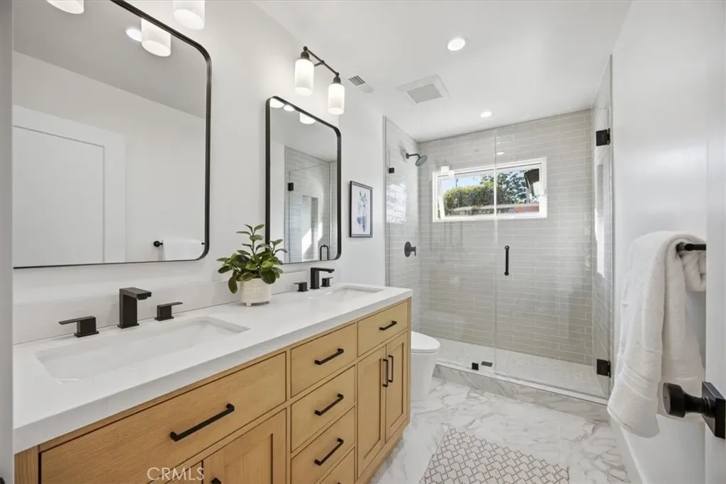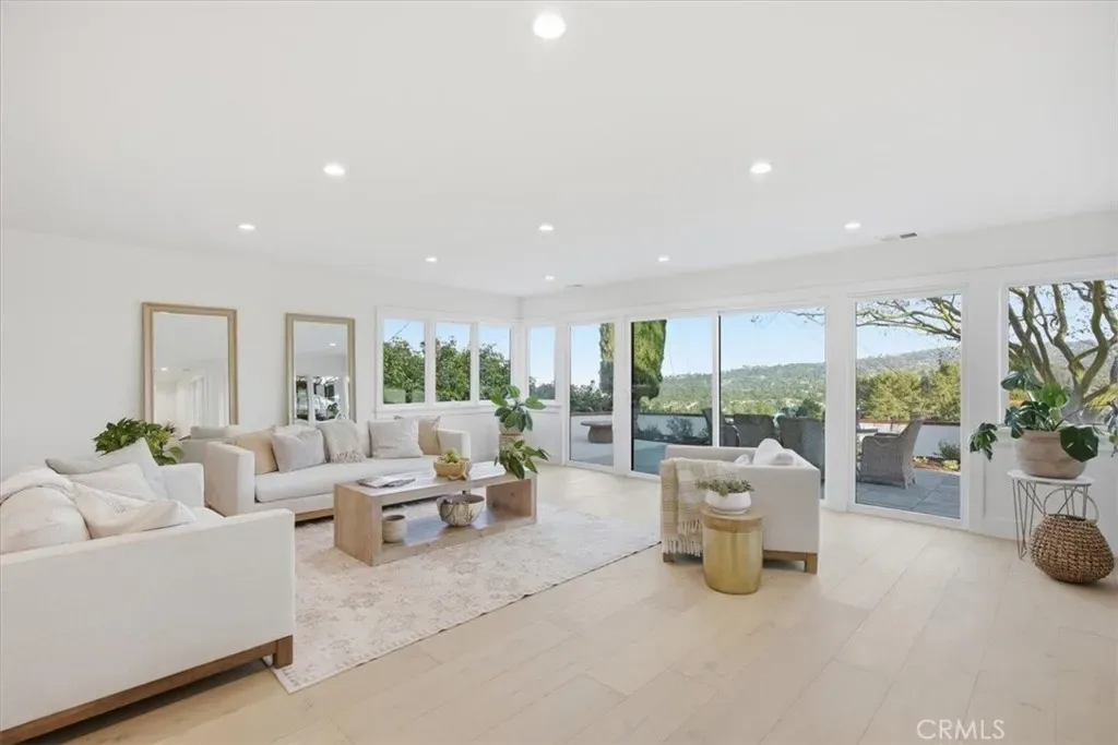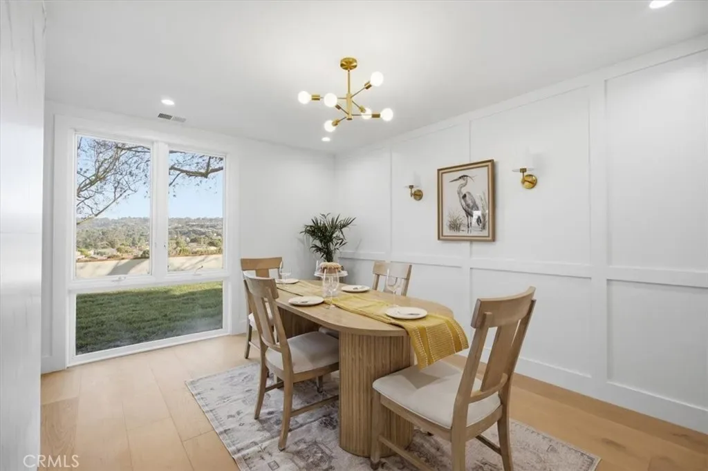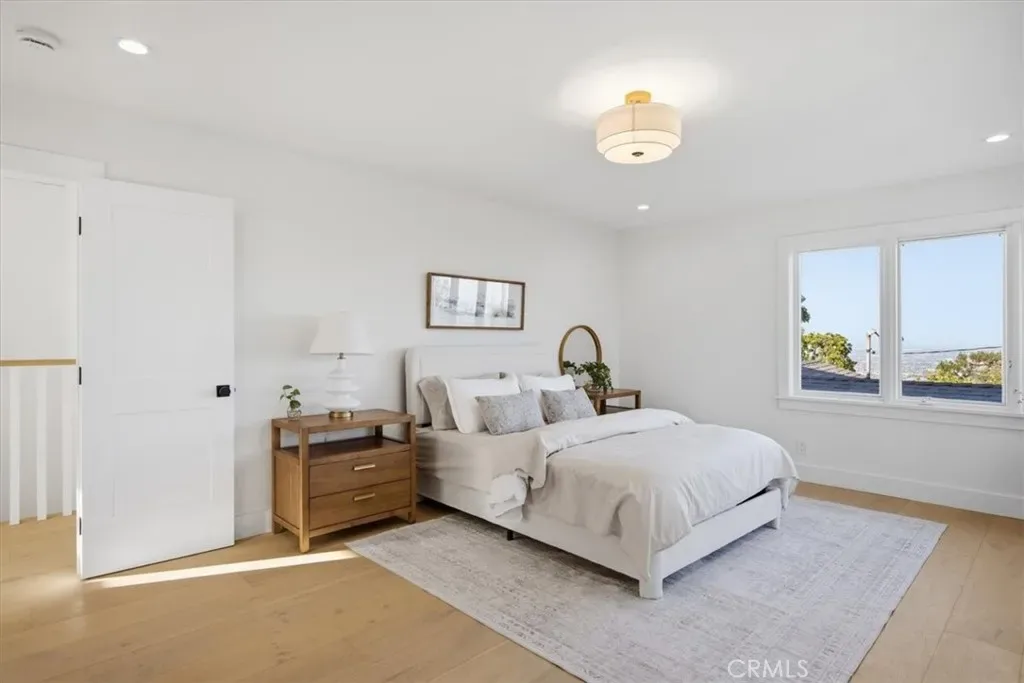Rare, fully transformed hillside home with sweeping ocean, harbor, mountain, and city views. Thoughtfully redesigned with permits and engineering, the home offers a clean, open layout with natural light throughout, highlighted by wide-plank white oak floors, custom wall paneling, and a large slider for that indoor-outdoor flow. The kitchen blends form and function with custom cabinetry, stone countertops, and premium appliances including a 48” Wolf double oven range, built-in microwave drawer, and beverage fridge. Dual primary suites feature updated bathrooms and walk-in closets, all finished with a consistent, high-end design. Major upgrades include a new roof, updated electrical and plumbing, central HVAC, and paid solar—creating a true turnkey experience. Finished garage with Tesla charger and a landscaped yard designed for privacy and views. Ideally located near Peninsula Center, Bristol Farms, dining, and Peninsula High.