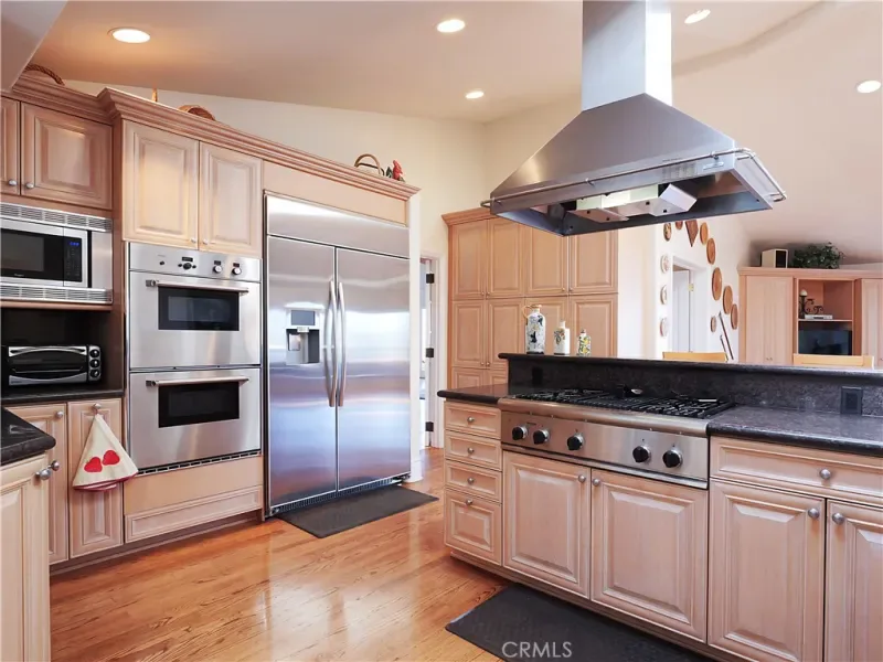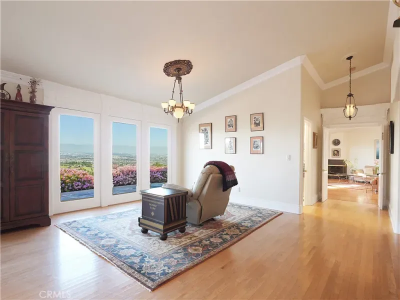 Set within the prestigious, guard-gated city of Rolling Hills, this extraordinary 5,500-square-foot residence offers sweeping City and Queen’s Necklace views from its bedrooms, decks and patios. French doors seamlessly blend indoor and outdoor living throughout this mostly single-story gem. Upon entry, the foyer welcomes with soaring ceilings and reveals an expansive, light-filled living room. A semi-open concept kitchen with Thermador appliances, granite countertops, and light wooden cabinetry serves as the perfect setting for both everyday living and the special moments in between.