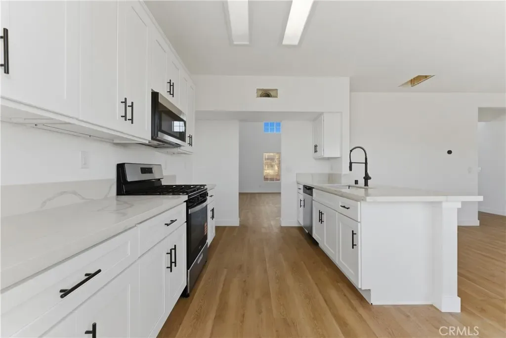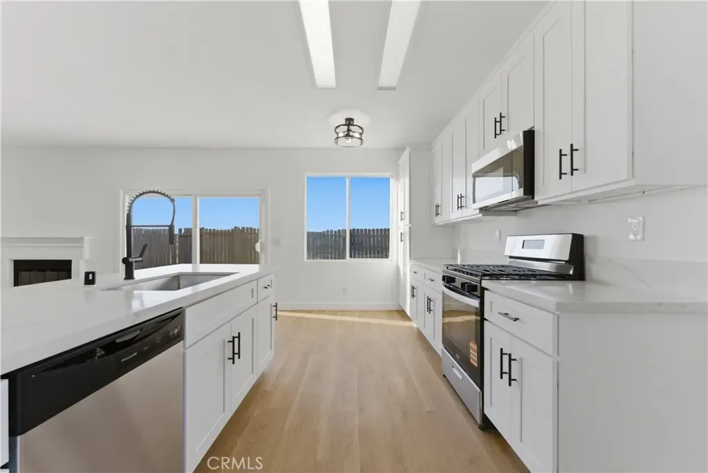 The interior features a show-stopping, brand-new kitchen and bathrooms equipped with new cabinets, fixtures, handles, and hardware. These spaces are further upgraded with new sinks, new faucets, and stainless steel appliances. Outside, the property offers a massive front yard ready for your vision and the potential for RV access, all while being located near the local freeway, military base, and area schools.