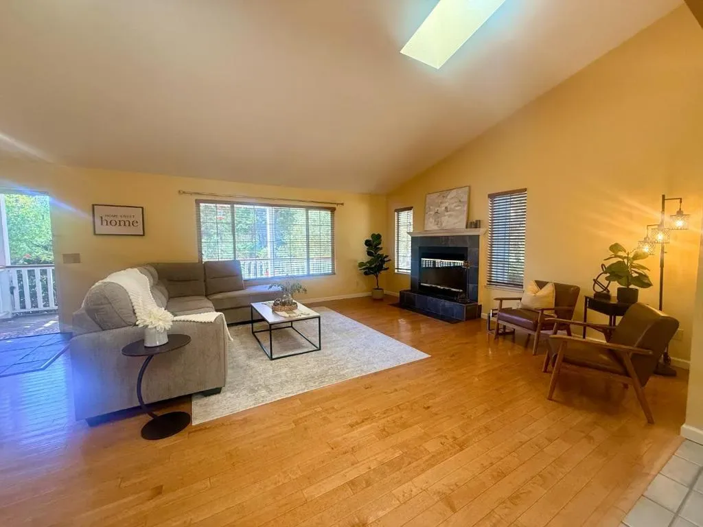 New Price! Welcome to Berta Meadows, a private gated community. This single level four bedroom home with a three car garage sits on an expansive 1.15 acre lot with a strong connection to the outdoors. Recently, the entire septic system has been rebuilt giving new owners peace of mind knowing this major system has been taken care of for years to come. Vaulted ceilings and skylights create an open, airy feel, with tile flooring in the dining area and hardwood floors in the living room. The eat in kitchen features stainless appliances, an island with sink, and French doors that open to a private backyard with a covered pergola & terraced garden space, ideal for outdoor dining. Four well sized bedrooms include mirrored closet doors and an updated hallway bath. The primary bedroom is generous, with windows that look out over the property’s natural landscape. One of the guest bedrooms is ideally suited for a home office or flexible workspace. Throughout the home, views capture the natural landscape of a mix of mature native trees, and thoughtfully placed walkways leading to a sunny front patio beneath majestic oaks. The three car garage includes a utility and laundry room with a dedicated work area. Ample parking and room to spread out complete this special property.