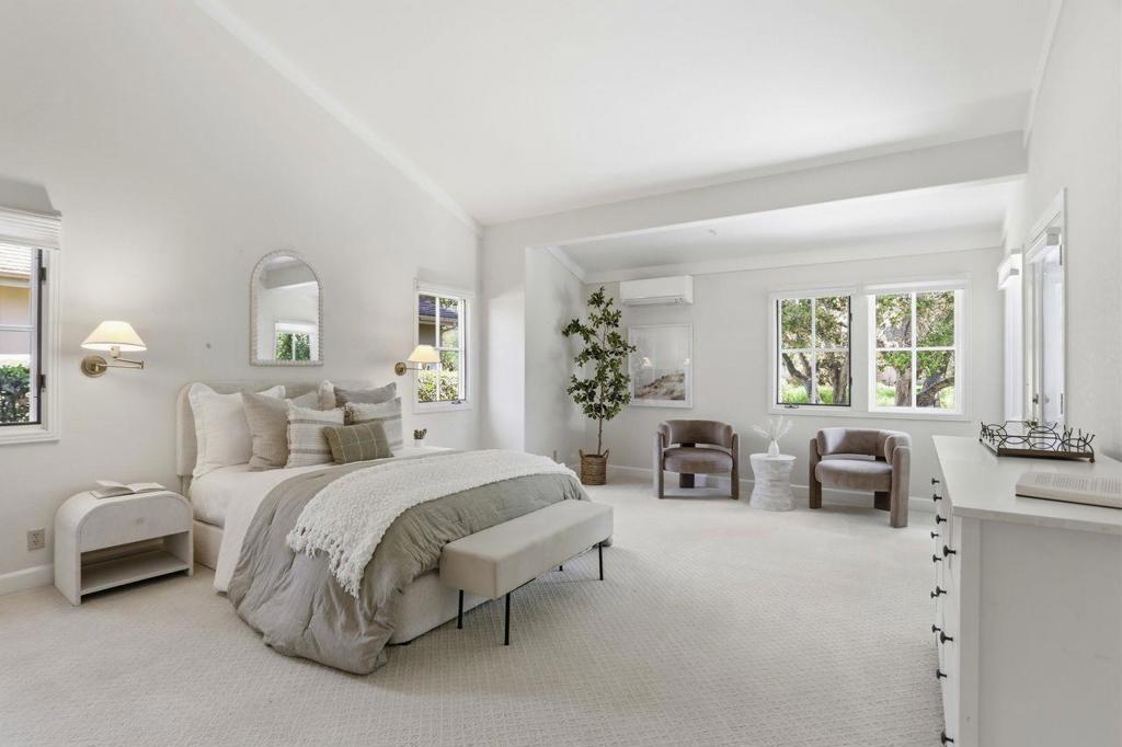 Welcome to your Hidden Oasis, Markham Ranch in Corral de Tierra of Salinas ~ This picturesque valley of rolling hills is a wonderful place to call home. This home has natural light throughout and is one of the best locations on Markham Lane! It’s perfectly set back on a cul-de-sac and backing to the seasonal creek dotted with Oaks – so peaceful. Handsome hardwood floors greet you as you enter the formal entry way, followed by the stunning living room with high ceilings, fireplace, built-in cabinetry and multiple French style doors accessing your backyard. There’s also a formal dining room with classic wet bar, gorgeous kitchen w/ adjacent breakfast nook and family room with fireplace – and that’s just the beginning! The bedroom wind has three bedrooms which includes a primary bedroom suite with a truly spacious bathroom with two sinks, deep tub, and walk-in closet. The other bedrooms both have a glass door leading to their own private yard and a shared central bathroom. Lets jump outside to the backyard from one of the six sets of glass doors! There is a huge wraparound deck overlooking for oak studded seasonal creek. You will also fall in love with the development’s setting, pool, tennis courts, club house and quaint trials for residences and guest. You will LOVE living here!