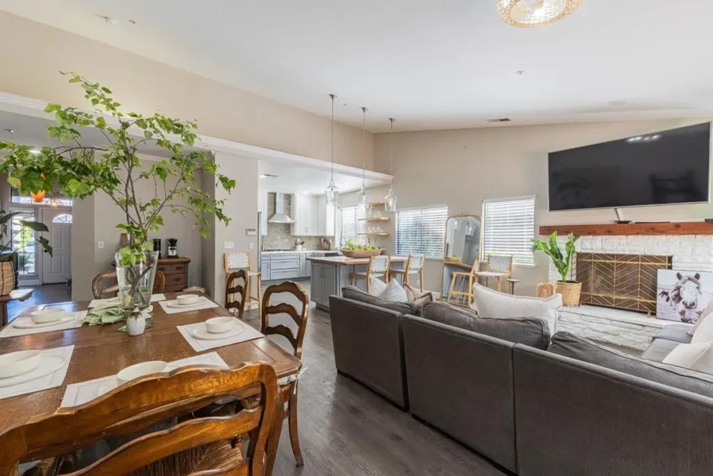 Welcome to 746 Nacional Court, a beautifully updated home located in one of Salinas’ most desirable communities, featuring sought-after construction by the Harrod Company. This 3-bed, 2-bath residence offers 1,812 sq.ft. of thoughtfully designed living space on a spacious 6,801 sq.ft. lot. Step inside to discover fresh interior paint, modern wood laminate flooring, and abundant natural light enhanced by upgraded lighting throughout. Just off the entry, a versatile space with custom doors functions as a private office or guest room and easily serves as a potential 4th bedroom. The home opens to a stunning vaulted ceiling and a seamless dining, family, and kitchen combo perfect for entertaining. The remodeled kitchen features custom and spacious cabinetry, quartz countertops, a stylish tiled backsplash, floating shelves, and a butcher-block island with pendant lighting that overlooks the family room. The primary and secondary bedrooms are thoughtfully situated for privacy, and a remodeled hall bath features sleek tile and a quartz countertop. Step outside to an expansive backyard complete with a custom pergola, a large wood-burning fireplace, a concrete hardscape, beautiful trees and a large grassy area ideal for gatherings. A perfect blend of comfort, style, and location.