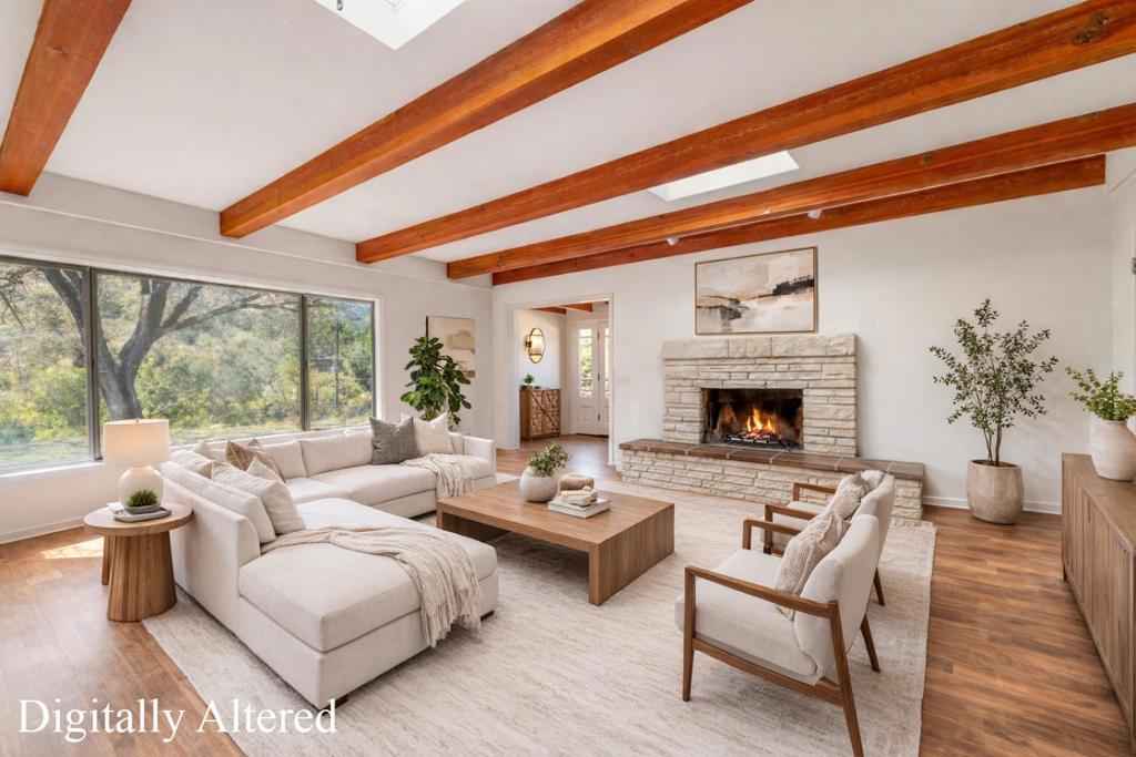Outstanding opportunity in desirable Laguna Seca Heights. This 2,230± sq. ft. home offers 4 bedrooms, 3 bathrooms, and an open floor plan ideal for comfortable living and easy entertaining. The spacious great room features large windows that bring in abundant natural light and showcase the surrounding views, along with a cozy fireplace that anchors the living space. The great room flows into a rustic eat-in kitchen area, creating a warm and inviting place to gather. The flexible bedroom layout allows space for a home office, study, or playroom depending on your needs. A dedicated laundry room with exterior access also works well as a convenient mudroom. Set behind a gate on approximately 1.8 acres, the property provides a rare combination of privacy, space, and convenience. The oversized four-car garage with RV parking offers excellent potential for a workshop, studio, or additional storage.