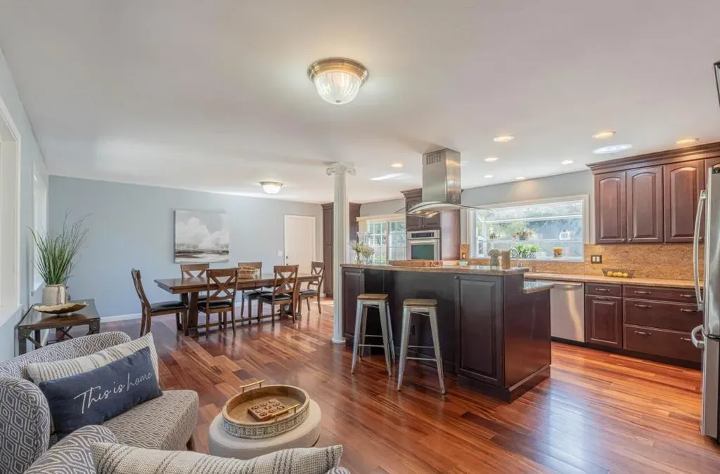 Welcome to this inviting Oak Hills Haven situated on over 1/3 acre of tree-lined seclusion! This tastefully updated & remodeled 4-bedroom, 2-bathroom home exudes charm & comfort throughout. Recent upgrades include new Pex plumbing with whole house filter; soft water system; new furnace & ductwork plus an air conditioner; a stunning primary bedroom remodel with a luxurious spa-like bathroom; and a new roof with solar. The kitchen is a culinary dream, featuring granite countertops, gas cooktop, double ovens, newer French door refrigerator/freezer, large pantry cupboard & a garden window looking out onto the expansive back yard. The flexible floor plan boasts both a family room & dining room and there is also a large, separate step-down living room featuring a modern stone fireplace with hand carved wood mantel. 3 sets of sliding French doors open up to the spacious back patio, artificial-turf playground, hot-tub and garden. When the world is fraught with stress and uncertainty it’s a joy to be able to come home to peace & tranquility, birds singing in trees, sun shining through windows and a steaming hot-tub waiting to help you unwind at the end of the day. This home is a private haven with the convenience of being just minutes to shopping, schools, major highways & the beach.