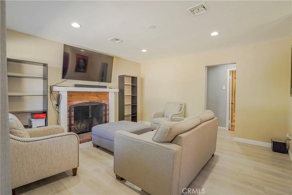 Inside, refinished hardwood floors extend through the living room, hallway, and all three bedrooms, creating a cohesive and inviting feel. The spacious living room and oversized family room provide flexibility for gatherings of any size, enhanced by recessed lighting that adds a bright and contemporary touch.