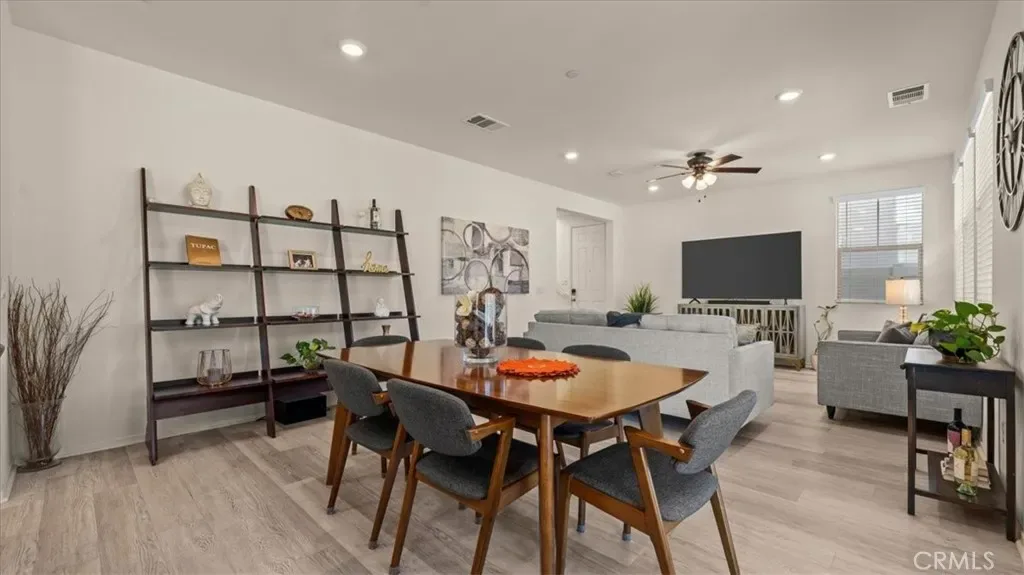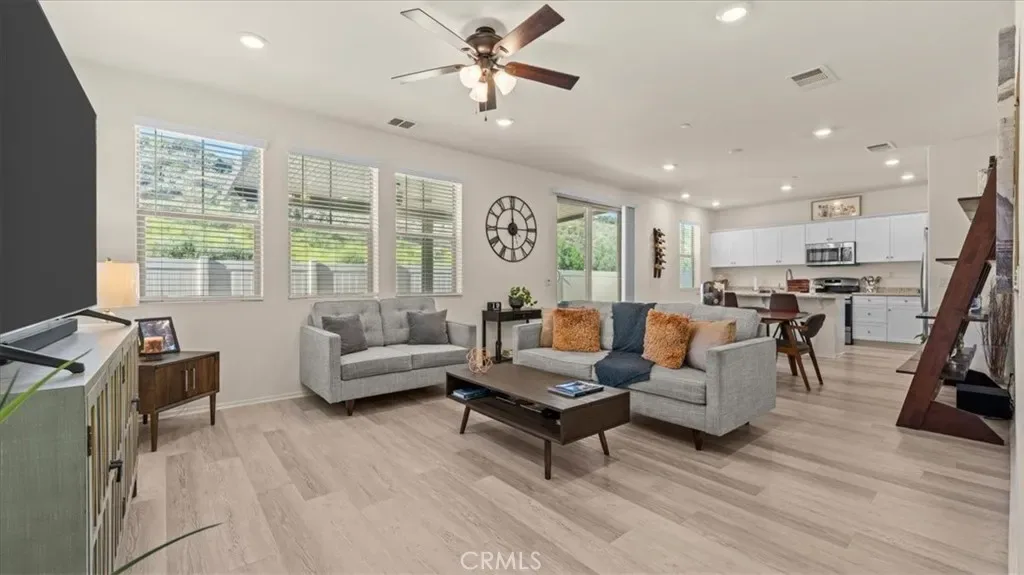 Welcome to this beautifully maintained 3-bedroom, 2.5-bathroom home offering modern design, clean lines, and an inviting open-concept layout perfect for everyday living and entertaining. The bright and spacious main level features a seamless flow between the living room, dining area, and a well-appointed kitchen with white cabinetry, stainless steel appliances, and a large island with bar seating, all enhanced by abundant natural light and stylish flooring throughout. Upstairs, you’ll find generously sized bedrooms, including a serene primary suite with a private bath and walk-in closet, along with well-positioned secondary bedrooms. The home also offers a convenient upstairs laundry area, recessed lighting, and an attached 2-car garage. Step outside to a private backyard with direct access from the main living space, offering the perfect setting for relaxing, entertaining, or enjoying the peaceful hillside views behind the home. With its thoughtful layout and move-in-ready condition, this home is a standout opportunity.