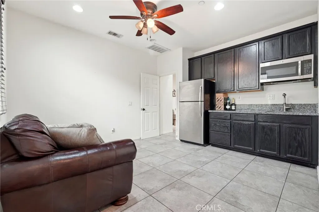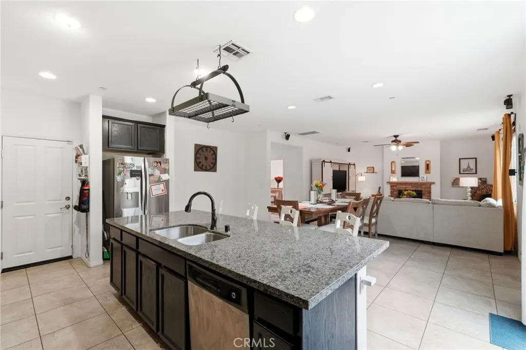 Step inside to an expansive open-concept floor plan featuring a gourmet kitchen with sleek granite countertops. The living area is centered around a cozy fireplace, perfect for cool California evenings. The “Next Gen” layout provides a unique opportunity for a private suite, ideal for guests, extended family, or a quiet home office.
