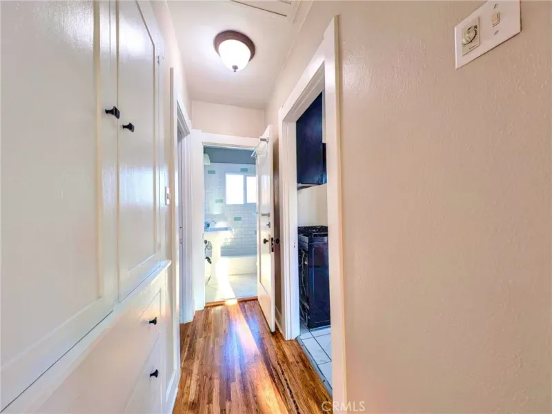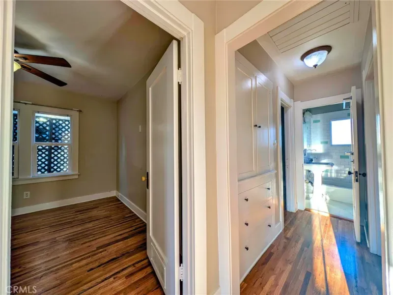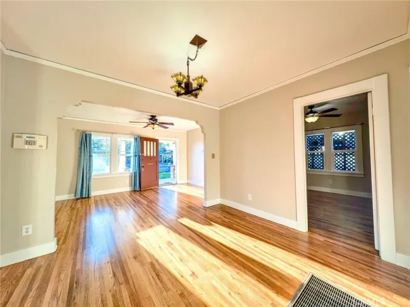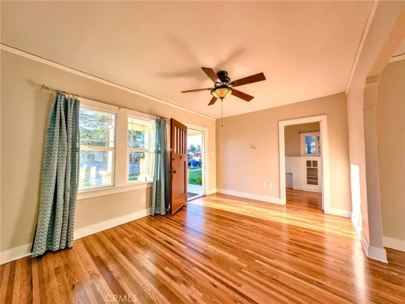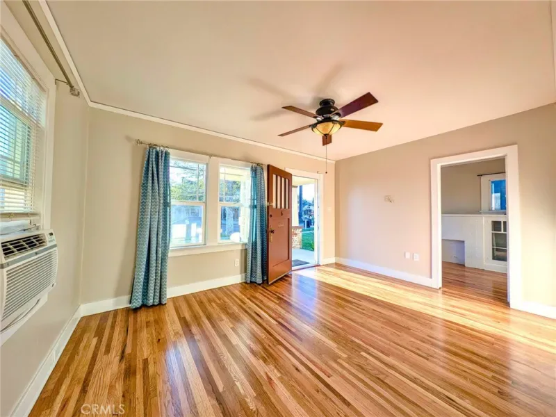 Upgraded 2 Bedroom 1 Bath + Office and Garage with Wood Floors- Beautifully redone interior and exterior with a Roof refurbishment and paint inside and out completed in the start of 2026 — Start your mornings with a whole house fan to bring in the cool morning air, or enjoy the covered patio and side yard parking / entertaining space with gated access to the the spacious backyard and 1 car garage.