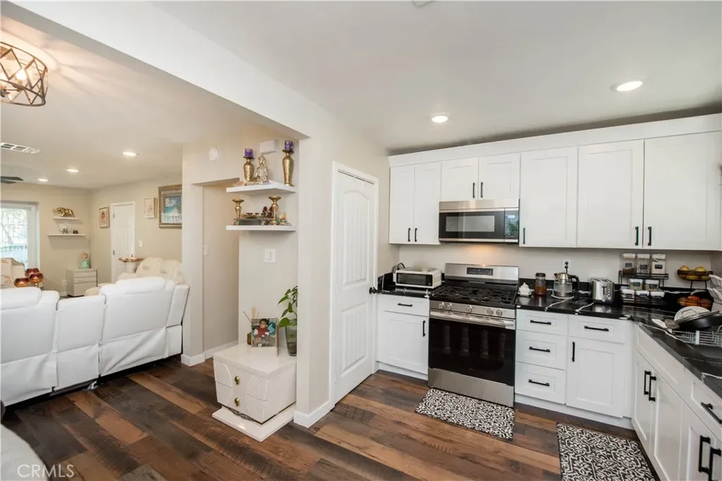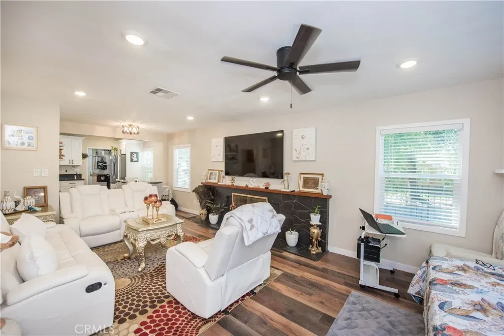 Beautiful 3-bedroom, 2-bath home located in a desirable North San Bernardino neighborhood. on a charming tree-lined street. This fully remodeled property offers extensive upgrades including newer windows, roof, HVAC system, plumbing, electrical, and interior/exterior paint. The modern kitchen features new cabinets and countertops, both bathrooms have been tastefully renovated, and additional highlights include waterproof flooring, new carpet, and updated closet doors. Situated on over a 1/4 acre gated lot, the expansive backyard provides ample RV parking and offers endless possibilities for outdoor living or future development; build up to two ADUs. Conveniently located near CSUSB, grocery stores, restaurants, and easy freeway access, this home blends comfort, style, and opportunity. Don’t miss an exceptional find…all furniture, housewares, and the trailer are negotiable.