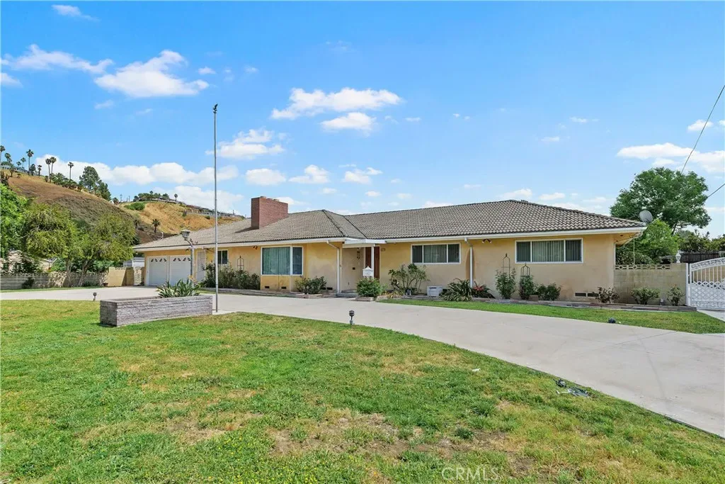 At the foot of the Kendall Drive hillside, this San Bernardino estate welcomes you with timeless charm, abundant space, and limitless opportunity. Resting on an impressive 19,000 sq ft lot, this residence blends comfort with elevated California living. Inside, you’ll find 3 bedrooms, 2 bathrooms, new plush carpet, and a dedicated formal conversation room, anchored by a striking brick fireplace with a handcrafted wooden mantle, the heart of the home. An attached 2-car garage with workshop offers unparalleled utility, while two fully permitted detached garages—one single-car and one 2-car, extending the property’s potential. Both detached structures present prime ADU conversion opportunities, providing space for extended living, rental income, or creative studios. A California patio with an extended vinyl cover connects the indoor and outdoor spaces, creating a sanctuary for relaxation and gatherings. Outdoors, the estate continues to impress with RV parking, full RV hookups, and paid-off solar, ensuring convenience and efficiency. The half-circle driveway enhances the home’s luxurious curb appeal, welcoming guests with a sense of elegance and arrival. A rare blend of beauty, utility, and future potential. This property is a canvas waiting for the next visionary owner.