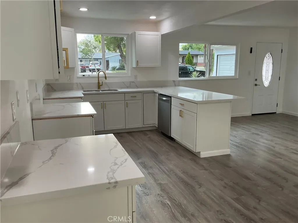 The open-concept interior features a seamless flow, open to kitchen with lovely cabinetry and sleek countertops. Both bathrooms have been updated with modern vanities and contemporary tile work. From the gorgeous flooring to the fresh, neutral paint palette that invites natural light into every room.