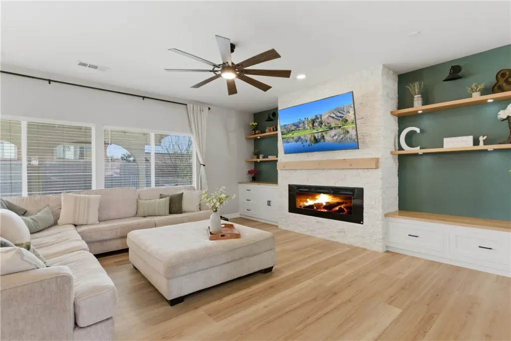 Looking for a remodeled home with a bedroom and full bath downstairs, a massive backyard, and NO solar or high tax rate? You just found it. This beautifully updated 4 bedroom, 3 full bathroom home offers the ideal combination of space, upgrades, and functionality. The thoughtfully designed floor plan includes a full bedroom and bathroom downstairs, perfect for guests, multi-generational living, or a private office space. Inside you’ll find updated flooring throughout, beautifully remodeled bathrooms, and a stunning custom-built fireplace with a designer mantle that creates the perfect focal point for the living area. Upstairs features a large loft offering the perfect flexible space for a second living room, media room, playroom, or home office. The additional upstairs bedrooms are generously sized and share an upgraded guest bathroom remodeled in today’s modern style featuring dual sinks, making busy mornings much easier. The spacious primary suite serves as a relaxing retreat and includes a large bathroom with dual sinks, a separate soaking tub, and a walk-in shower. Step outside to a large backyard with lush grass and a covered patio, perfect for entertaining, relaxing, or enjoying the outdoor space this oversized lot provides. The property also offers RV potential, giving you even more flexibility for storage, toys, or future possibilities. A rare opportunity to own a move-in ready home with upgrades, space, and a highly functional layout.