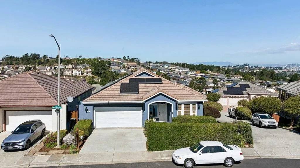Positioned on one of the most desirable and private lots in the subdivision, this residence offers the largest floor plan in the community with an ideal blend of space, comfort, and modern updates. Approximately 2600 square feet, the home features 4 bedrooms and 3.5 bathrooms with a flexible layout suited for multigenerational living, extended family, or work from home needs. Soaring ceilings and abundant natural light create an open and inviting atmosphere throughout the main living areas. The updated kitchen and remodeled bathrooms offer contemporary style and functionality, while fresh interior and exterior paint provide a move in ready presentation. Designed for indoor outdoor living, the home includes two spacious decks with sweeping Bay and mountain views, perfect for entertaining or relaxing. The oversized lot features a rare level rear yard with exceptional privacy, uncommon for hillside properties. Additional highlights include a two car garage and Tesla solar system for added efficiency and value. A rare opportunity to own one of the community’s most desirable homes combining privacy, versatility, and scenic views today.