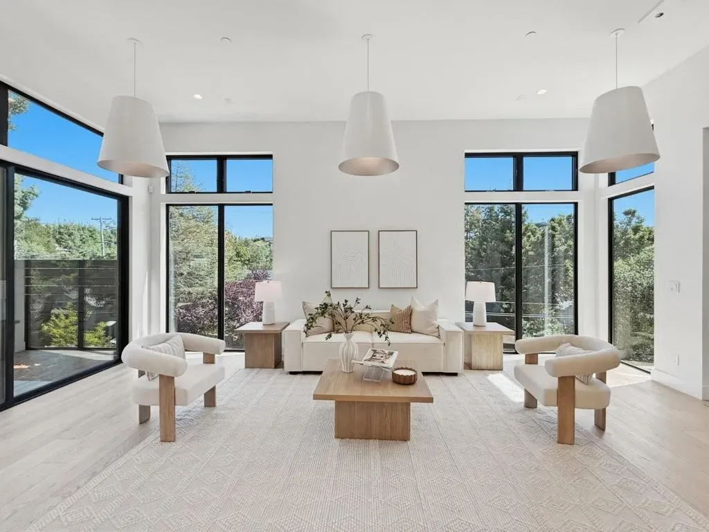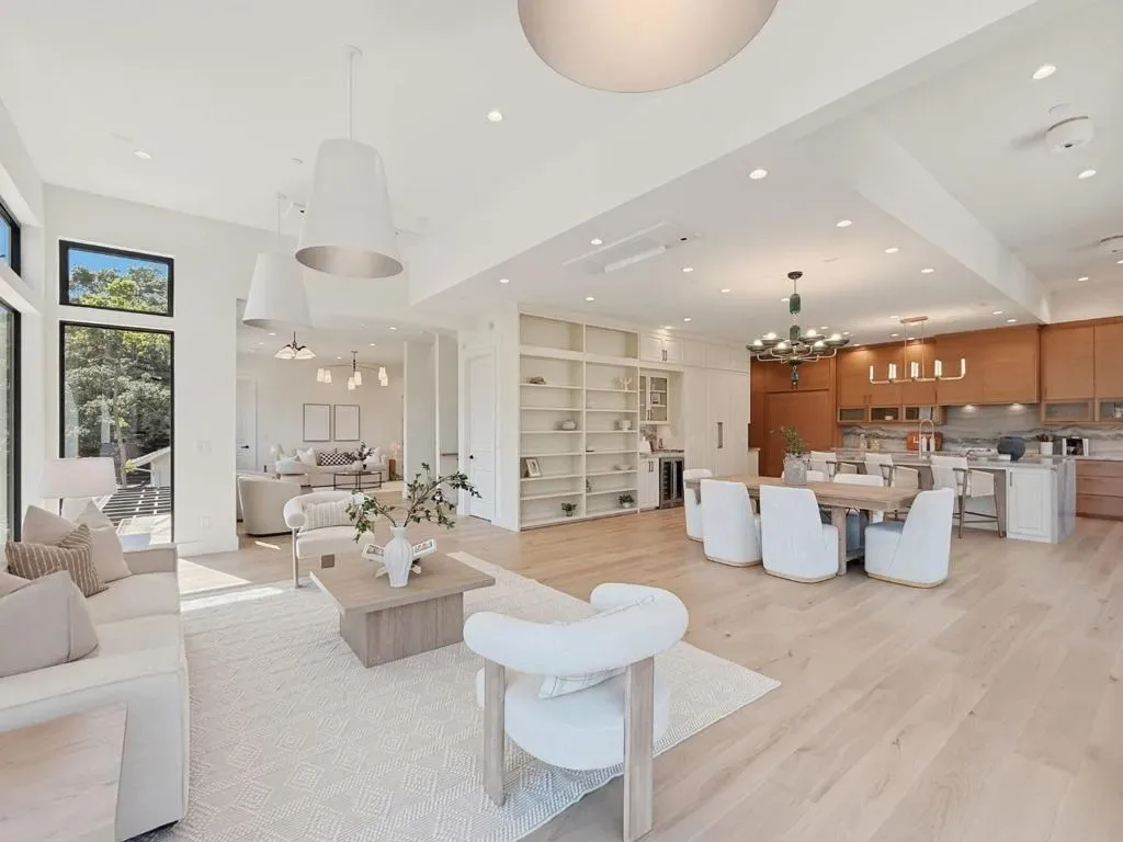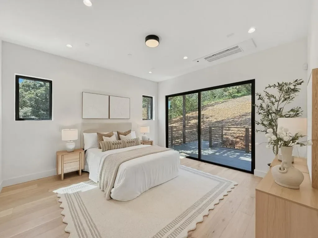 This newly constructed property was built on a spacious lot in the lower Devonshire Canyon of San Carlos. The California-modern design home features an open floor plan and expansive glass walls that look out into serene views of nature from nearly every room. This prime neighborhood is within close proximity to downtown San Carlos and top-rated schools. The main living area has sophisticated design elements, high ceilings, floor-to-ceiling windows, and an open-concept kitchen that provides for easy entertainment. Large glass doors connect seamlessly to an inviting landscaped yard that is perfect for indoor-outdoor living. Home chefs will appreciate the ILVE range, two dishwashers, and walk-in pantry. The dining area fits a large table and graciously flows to the living room. The main living floor has a family room, two bedrooms, a powder room, and a full bathroomperfect for guests and/or a home office. Upstairs, three additional bedrooms include a primary suite with a private deck that looks out into a large backyard. The primary bathroom has a luxurious shower and a freestanding tub. This floor also has a large laundry room. This property is a truly rare find on the Mid-Peninsula!