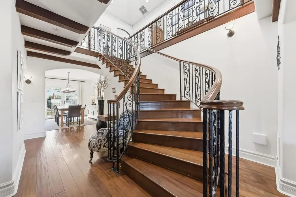 Magnificent Mediterranean masterpiece on one of San Carlos’ most desirable tree-lined streets! This stunning custom home blends old-world elegance with modern luxury. Exceptional craftsmanship is showcased through French-imported roof tiles, Napa Valley stone accents, copper gutters, and hand-troweled plaster walls. The dramatic entry features a sweeping spiral staircase with custom wrought iron railing and exposed aged wood beams. The elegant living room offers marble-accented built-ins and a gorgeous stone fireplace. The remodeled chef’s kitchen dazzles with top-tier appliances, pot-filler, and abundant cabinetry, opening seamlessly to the dining area and lush backyard ideal for entertaining. The luxurious primary suite includes dual custom closets, a private terrace, and a spa-inspired bath with clawfoot tub, large shower, heated floors, and quartz counters. Enjoy cherry hardwood floors, Sonos sound, dual-zone HVAC, skylights, and a spectacular backyard oasis with pool, spa, waterfall, flagstone patio, and built-in BBQ. Just blocks to downtown, top-rated schools, and commute routes. This extraordinary home defines the best of San Carlos living!