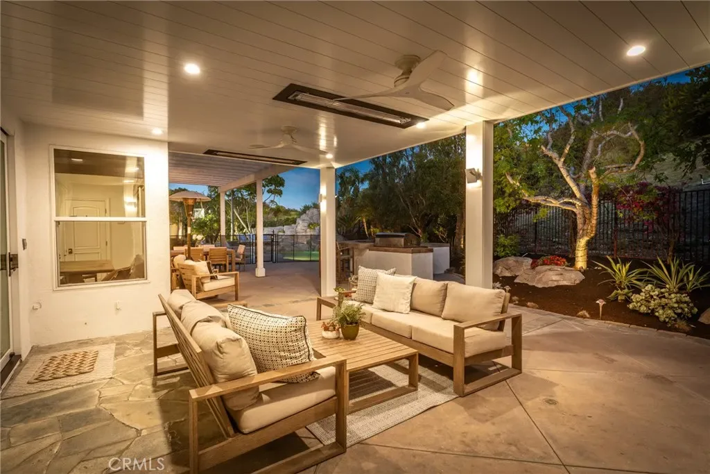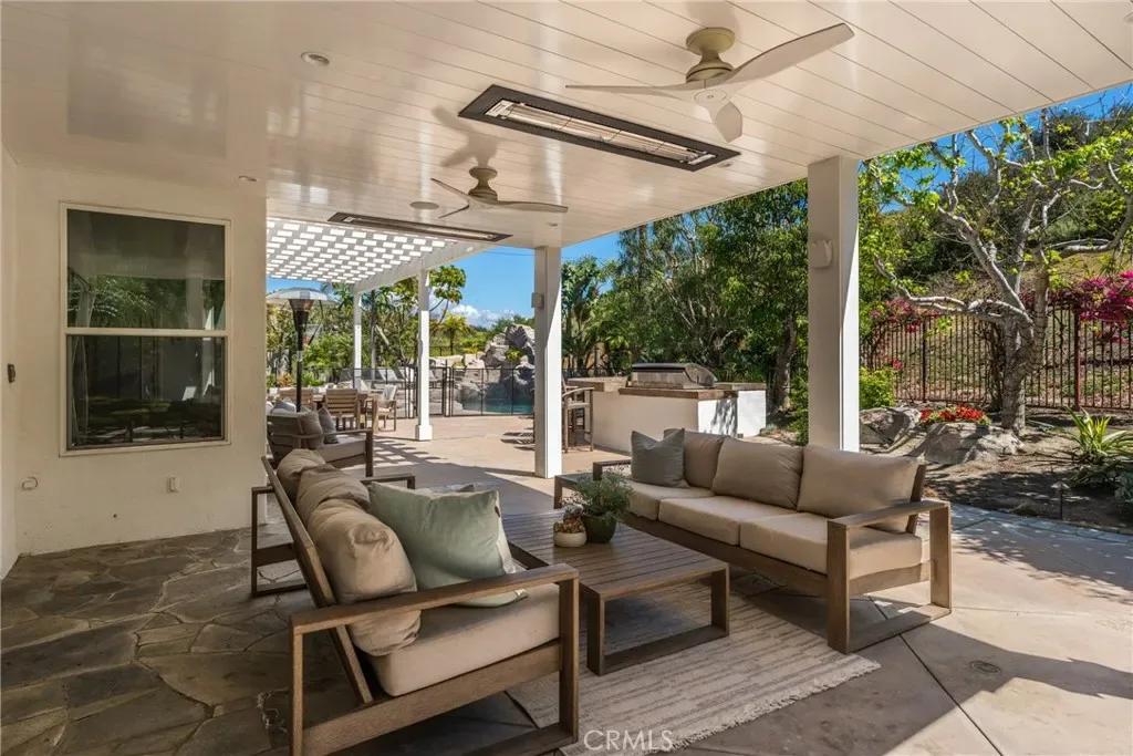 From the moment you arrive, there’s a sense that this is something truly special. Ideally positioned at the end of a quiet cul-de-sac in Rancho San Clemente, this exceptional residence sits on a rare, oversized lot, offering privacy, space, and an extraordinary resort-style setting. The backyard is designed for both relaxation and connection, featuring a custom saltwater pool with slide, sunning shelf, and waterfall, spa, built-in BBQ island, firepit, half basketball court, sprawling lawns and multiple gathering areas. Expansive bifold doors create a seamless indoor-outdoor experience, opening to a covered, heated patio with ceiling fans and ambient lighting, perfect for year-round enjoyment.