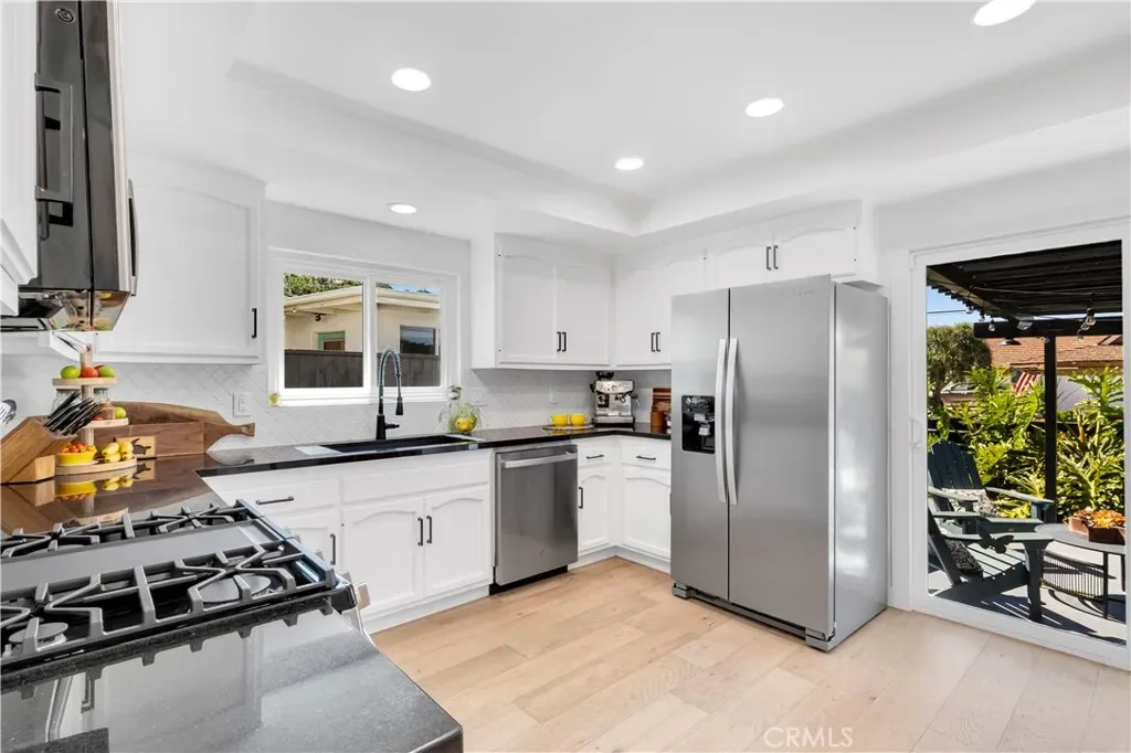 Welcome to your dream single-level mid-century home with a 70’s twist—where style, space, and that unmistakable “let’s have a martini (or mocktail) at sunset” vibe all come together. Set on an expansive 10,065 sq ft lot (rare for the area) this 3 bedroom, 2.5 bathroom home offers approximately 1,951 sq ft of thoughtfully curated living space, all wrapped in effortless coastal energy in one of San Clemente’s most desirable areas. Inside, wide plank wood flooring in a soft, beach-inspired finish grounds the space, while curated updates throughout bring a sense of cohesion and ease. The kitchen pairs crisp white cabinetry with solid slab dark stone countertops and a stainless steel appliance suite—both functional and visually striking. Entertaining is elevated here. Designed for both everyday living and entertaining, the oversized dining room is made for dinner parties, while the dedicated bar/lounge room – complete with a plumbed bar and a stunning pitched wood-beamed ceiling – sets the stage for relaxed evenings and unforgettable gatherings. The living room makes a statement of its own, centered around a bold black lava rock fireplace with a custom distressed wood mantle. The primary suite offers a quiet sense of luxury, complete with dual closets, scenic views, and a beautifully remodeled ensuite featuring a soaking tub, step-in shower, and dual vanity. Two additional bedrooms are well-proportioned and share an updated dual-sink hall bath, while a separate powder room adds convenience rarely found in homes of this size. Thoughtful upgrades include new dual-pane windows, a fully updated HVAC system with new ducting and attic insulation, and custom window coverings throughout. Step outside and experience the ultimate backyard setup – complete with new turf and pavers, a pergola with fire table, BBQ bar, spa, and updated fencing with new gates. An outdoor shower adds the perfect coastal touch – ideal for rinsing off after a beach day or surf session. Even the front yard is engaging, with lush landscaping, fruit trees, and a charming seating area under a pergola. With no HOA or Mello Roos, coastal breezes, canyon and Saddleback mountain views, and a location just minutes from the beach and the iconic downtown San Clemente scene, this is more than a home – it’s a lifestyle.