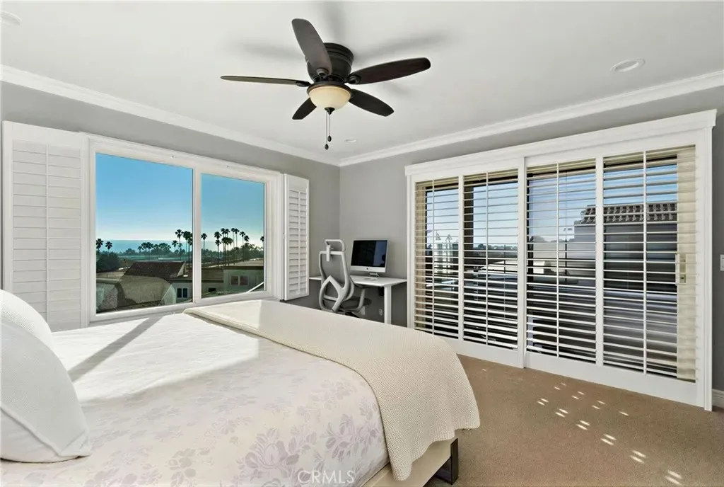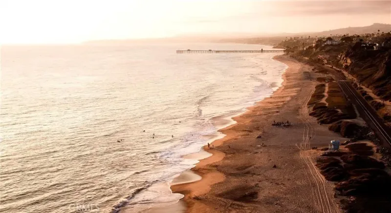 Enjoy the ultimate coastal lifestyle with sweeping ocean and Catalina views and stunning golden-hour sunsets in the highly sought after Ocean Hills community of San Clemente! This sun filled corner lot home offers panoramic views from multiple vantage points, creating a true coastal sanctuary. The open-concept living, dining, and kitchen areas flow seamlessly, perfect for entertaining or everyday living, with natural light streaming through plantation-shuttered dual-pane windows and sliders. Featuring two primary suites each with private en-suite bathrooms, the front suite offers ocean views, a private deck, and an upgraded walk-in shower, while the rear suite includes a tub/shower combo for added comfort. A convenient half bath and full-size laundry (washer and dryer included) on the main floor add ease to daily living. Outdoor living is effortless with two ocean-view decks and a spacious fenced rear patio with built-in BBQ area with seating, refrigerator, and sink make this perfect for entertaining. Additional highlights include an extra-tall two-car garage with a storage pop-out ideal for boards, bikes, or a workshop, and paver driveway space. Residents enjoy resort-style amenities including a 9-hole pitch-and-putt golf course, pickleball and basketball courts, two pools, and a clubhouse. Low HOA dues, no Mello-Roos, and a location just minutes from Trader Joe’s, restaurants, coffee shops, and beaches complete this coastal dream home.