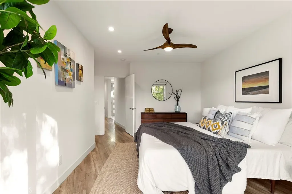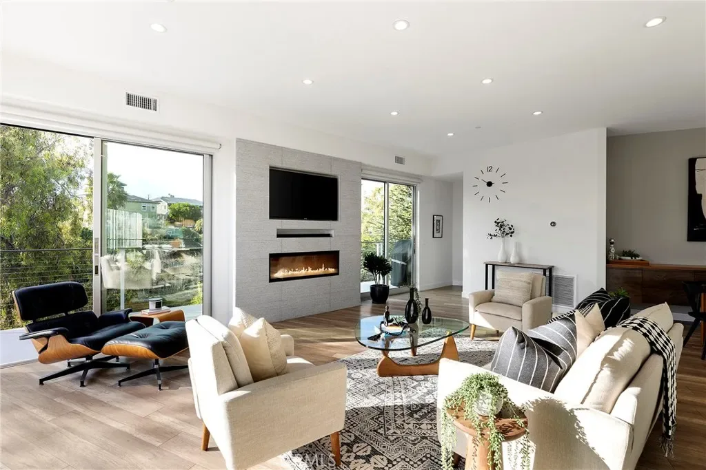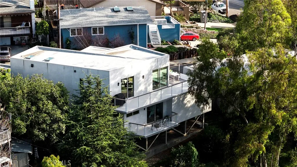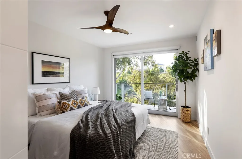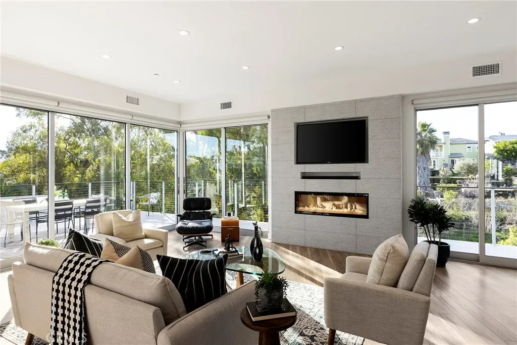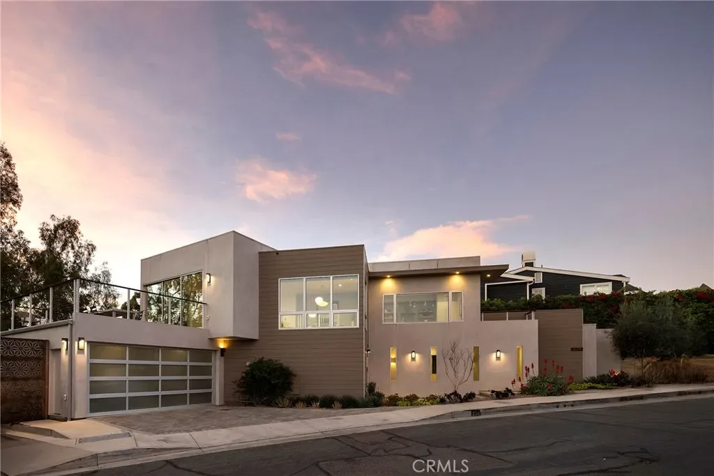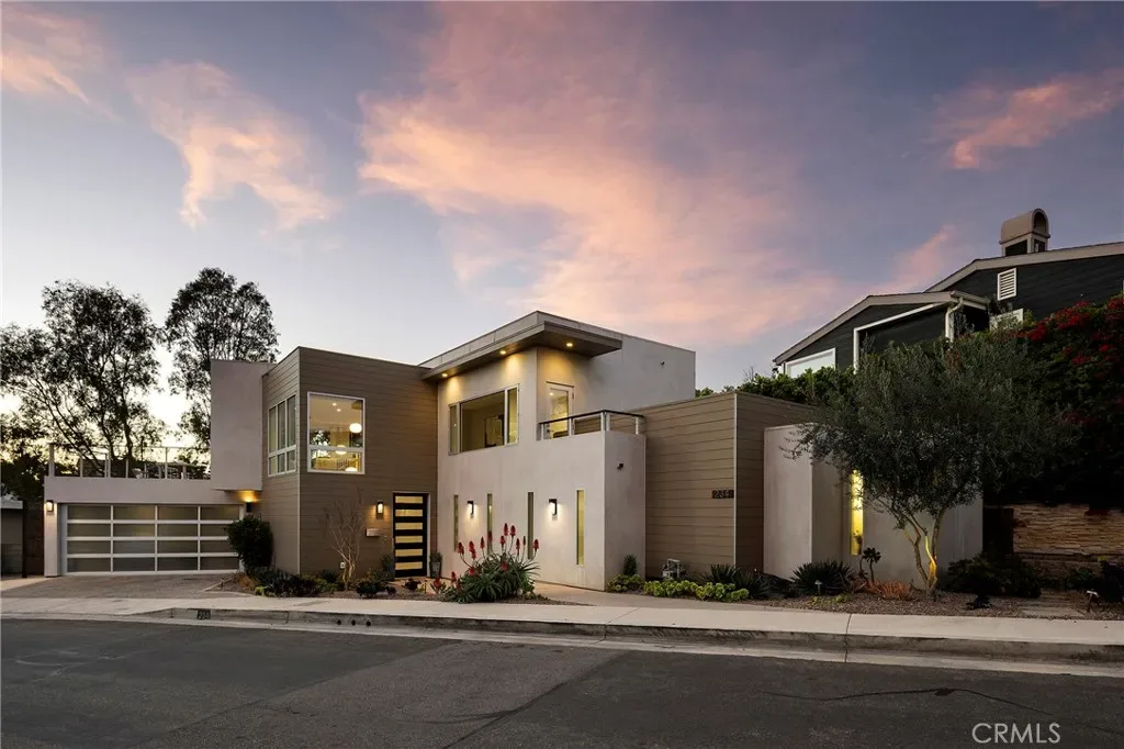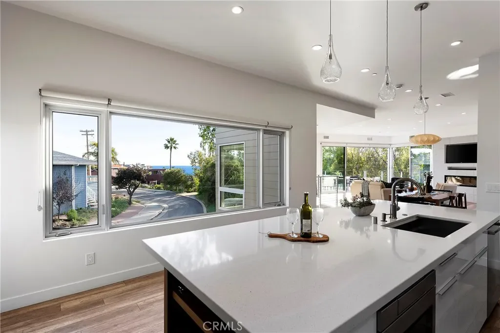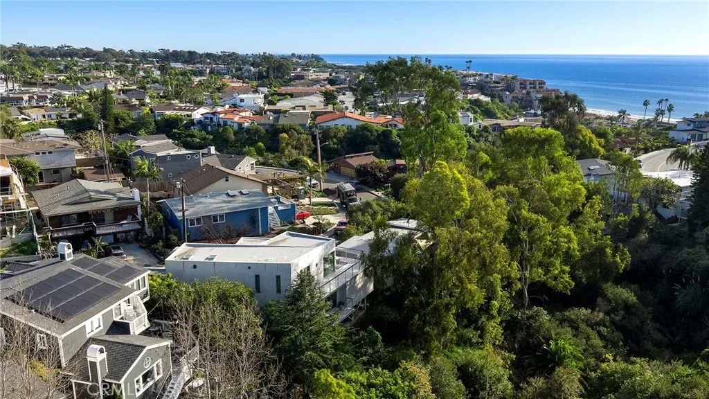 Tucked away on one of Southwest’s most special horseshoe streets, this ocean-view home offers true serenity. Newly-built in 2017 from the ground up overlooking the lush canyon beyond, this offering is among the finest recent opportunities. Located between the Riviera District & Lasuen neighborhoods, the location couldn’t be better. Surrounded by mature trees, the home offers a level of privacy rare to come by this close to the beach. Strategically designed, this custom-build offers a sophisticated level of contemporary architecture with ocean views from the upper living space. Upon arrival, the front elevation spans an impressive 116’ of frontage with a generous 6,800 SF lot. A dynamic design welcomes you inside to a formal entry. Large windows flood the space with natural light through a custom wrapping wood staircase. On the lower level, the primary suite faces the canyon with its own private deck, a luxurious bathroom, dual sinks, walk-in shower, & spacious walk-in closet – very serene & private on the canyon. Down the hallway, two bedrooms share a modern Jack&Jill bath with dual sinks, privacy toilet, & walk-in shower. Beyond that, a full suite with elevated ceilings, (ADU potential: separate access, loft, futured for kitchenette or laundry). Up an artistic staircase leads to modern & open living spanning the kitchen, dining, & family room, all framed by walls of glass, high ceilings, & wide plank flooring. A European-inspired kitchen features stainless appliances, a large island with bar seating, walk-in pantry, balcony, skylights & picture window to the crisp ocean view down the canyon. Flow-through dining offers major flexibility with space for a massive dining table & unique custom built-in wood storage console. Light-filled living with a tiled fireplace anchoring the room. 8’ stacking window walls lead to a spacious deck with ocean views through the trees creating perfect indoor-outdoor flow. Mature trees screen the rear side of the deck & create an lush outdoor setting. Other values: no HOA, zoned A/C, groovy Porcelanosa tile, wired shades, finished garage with interior access, refreshed landscaping, high-end fixtures, indoor laundry, & an outdoor shower. Walk to nearby ‘locals’ favorite’ beaches, take the 2.5 mile beach trail to restaurants, coffee shops, bars, & the iconic SC Pier. A fun bike ride to world-class surf at Trestles. An exceptional opportunity for a newer construction home in one of Southwest San Clemente’s best locations!