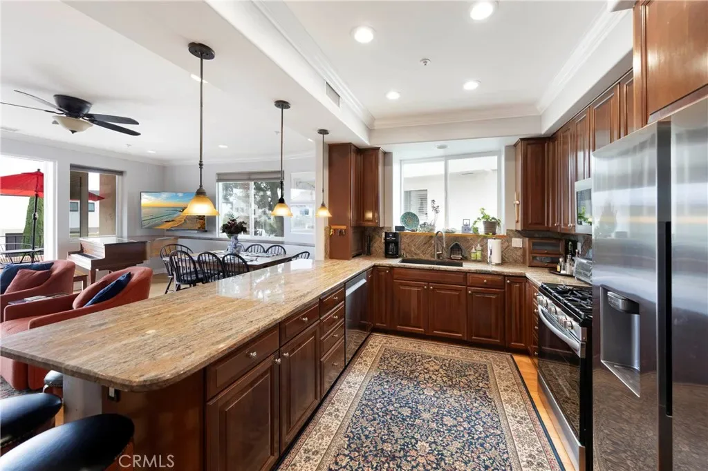 Enjoy a prime location just a short walk to Del Mar Street’s shops, restaurants, and weekend farmers market. The beach trail, popular surf spots, coffee shops, and dining in the Pier Bowl are all nearby, with easy access to the train and commuter rail.
