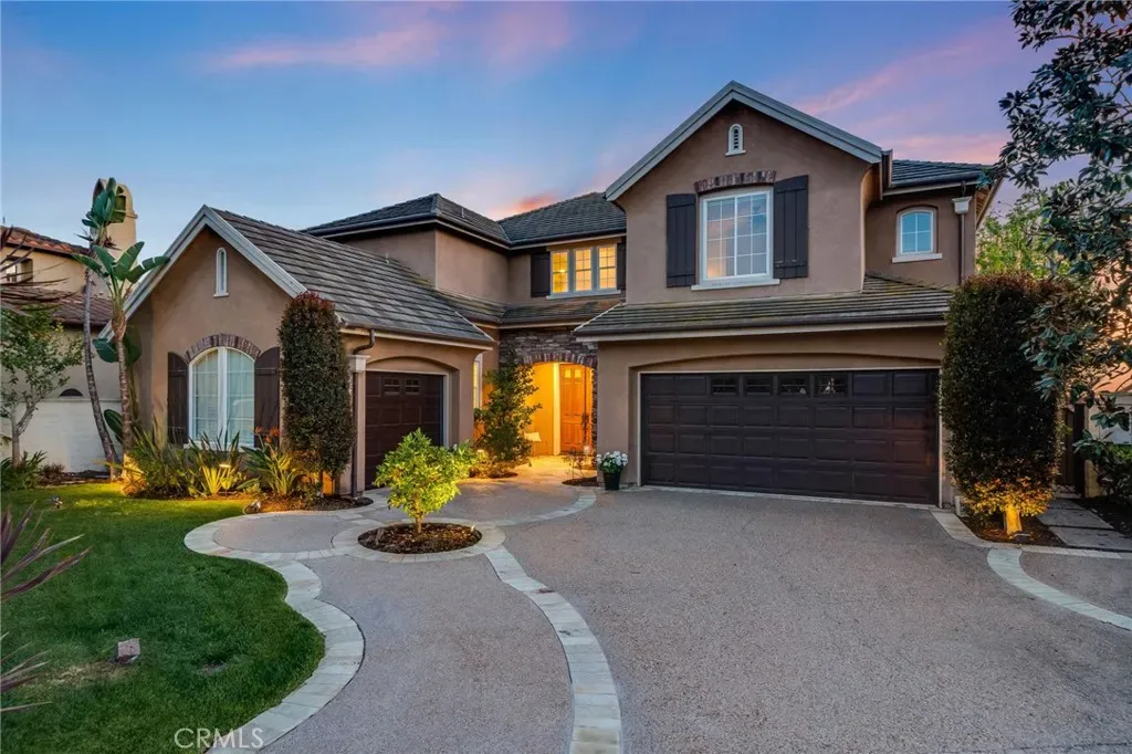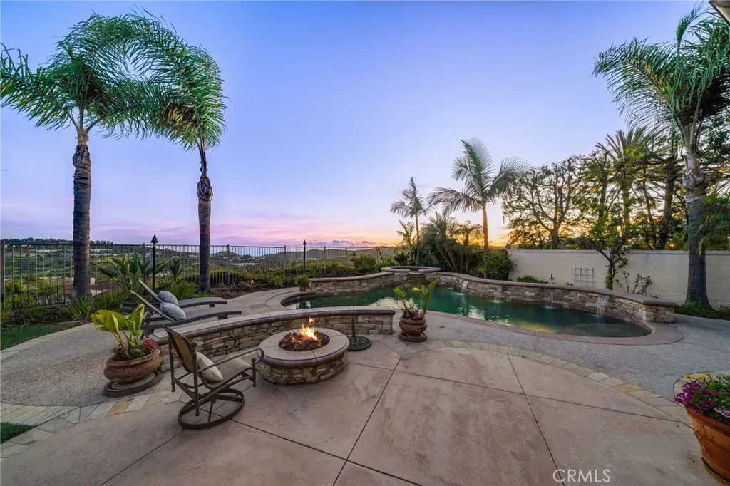 Stunning ocean view home in the highly sought after Pacifica Summit, ideally situated on a quiet cul-de-sac. This premium, rarely available lot showcases sweeping ocean, rolling hills, and sparkling city light views. The backyard is a true resort style paradise, complete with a saltwater pool and spa, built-in BBQ, putting green, and two fire pits.