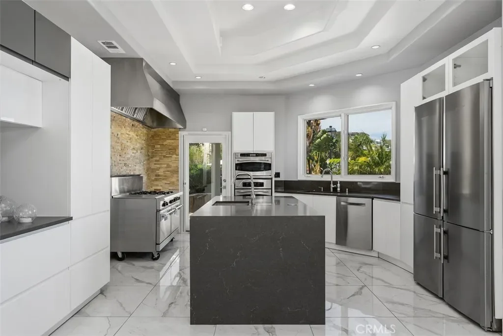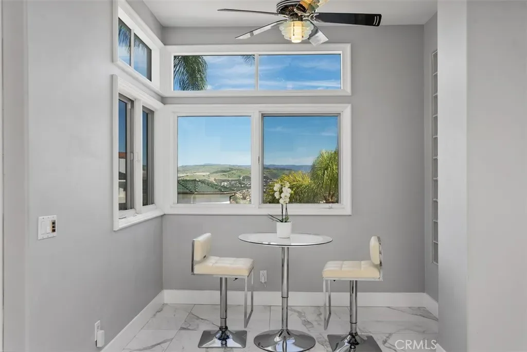 Captivating Views from this Prestigious Sea Pointe Estates property! Perched high on a hill in the exclusive guard-gated community of Sea Pointe Estates, this custom 5-bedroom, 5.5-bath estate offers privacy, elegance, and panoramic views. Situated on a single-loaded street on a unique triangular lot, back stree is a cul-de-sac the setting provides exceptional privacy and stunning surroundings. Designed with an open-concept layout, the home features a main-floor primary suite, executive office, and spacious 3-car garage—all at street level. Formal living and dining rooms share a beautiful fireplace, complemented by a warm and inviting family room and a chef’s kitchen built for entertaining. The kitchen boasts a massive island, stainless steel appliances, an oversized built-in side-by-side refrigerator, a commercial-grade gas range with ovens, new white cabinetry, and black granite countertops. Seamlessly blending indoor and outdoor living, the kitchen opens to a covered outdoor kitchen and dining area. The expansive wraparound yard is finished in elegant slate with water features, lush tropical landscaping, and garden areas. Enjoy ocean breezes along with sweeping hill and mountain views, plus a peek-a-boo ocean view. All additional bedrooms offer privacy, each with its own bathroom and direct access to exterior living spaces. Every room in this remarkable estate enjoys a view, making it a true entertainer’s paradise. Community amenities further elevate the lifestyle this exceptional property provides. Conveniently located to dining, shopping, freeway, and much more. Minutes from downtown San Clemente, Dana Point, and San Juan Capistrano.