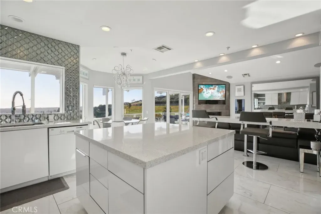 At the heart of the home, the gourmet kitchen is a chef’s dream, showcasing top-tier appliances, designer finishes, a sun-drenched breakfast nook, and panoramic ocean vistas that transform everyday meals into a luxury experience. The primary suite is a true coastal retreat, boasting wall-to-wall ocean views and a spa-inspired bathroom designed for pure indulgence.