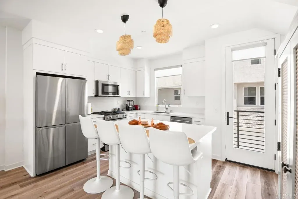 Better than new! Welcome to a highly upgraded townhome in the sought-after 3Roots community in Sorrento Mesa, featuring owned solar, smart home technology, and modern finishes throughout. Ideally situated within minutes of the Sorrento Valley tech corridor and tucked away from busy streets, the home shows like a model, with modern oak-wood-style flooring, custom blinds, and energy-efficient appliances, all with serene mountain views. The flexible entry-level bedroom with a full en-suite bath is ideal for guests, a home office, or multigenerational living, with direct access to the upgraded two-car garage complete with epoxy flooring, custom overhead storage, and integrated internet wiring. On the third floor, two additional en-suite bedrooms include a spacious primary suite with beautiful mountain views. Built within one of San Diego’s most innovative, eco-conscious communities, 3Roots offers residents access to a state-of-the-art Fit and Rec Center, resort-style pools, spas, cabanas, fire pits, miles of scenic trails, and over 200 acres of preserved open space. Ideally positioned minutes from Sorrento Valley, UTC, and major employers, including Qualcomm, Apple, Illumina, and UC San Diego, with top-rated San Diego schools rounding out the package. Offered furnished or unfurnished, this turnkey home offers effortless living; just bring your suitcase and start enjoying everything this exceptional home has to offer.