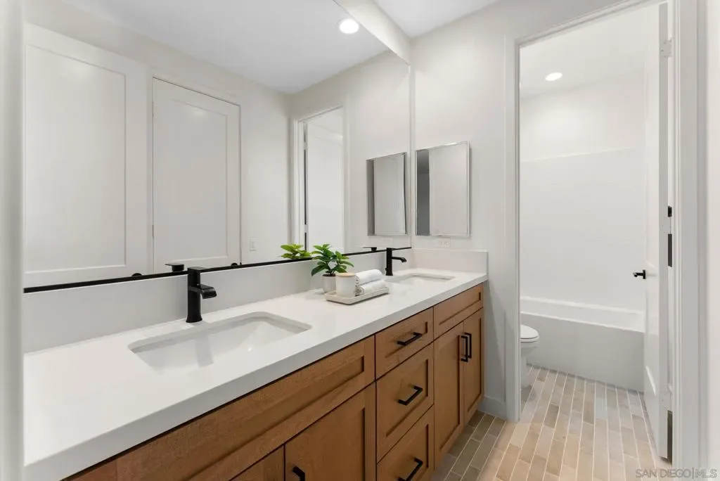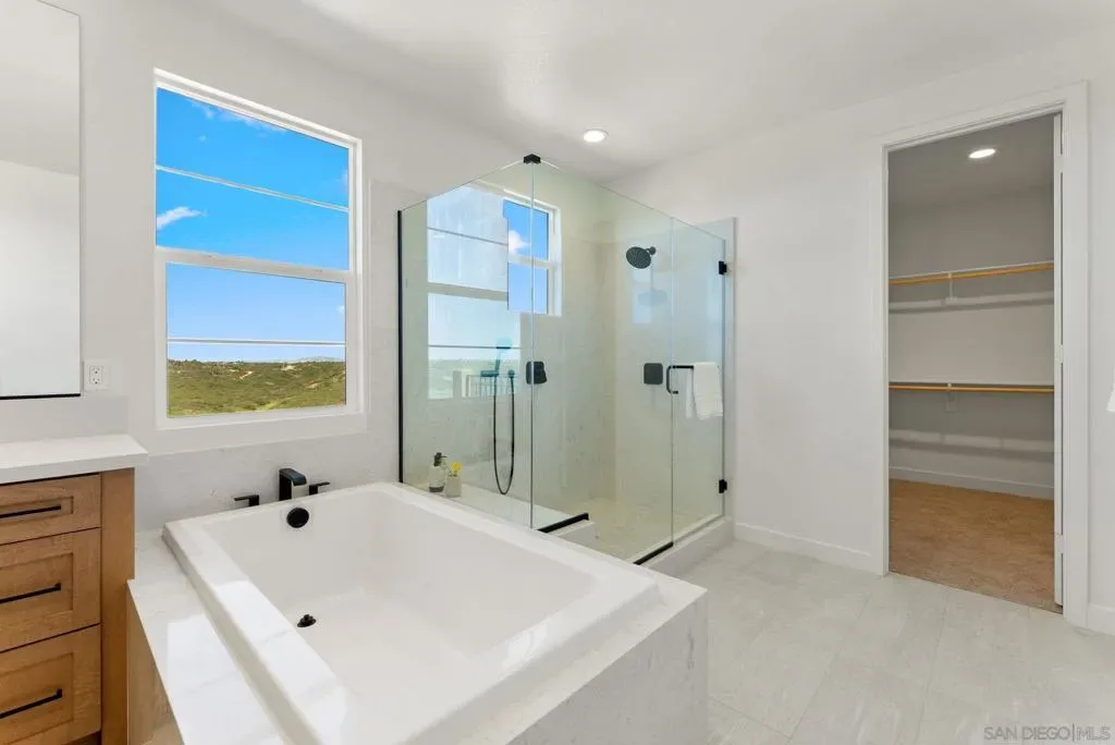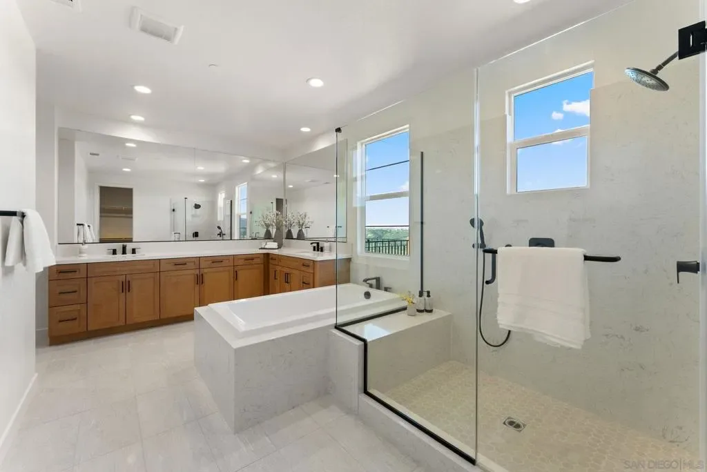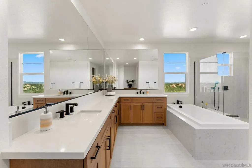 Lot 3 – New Construction Home in Sorrento Mesa. Welcome to Tierra Alta, an intimate 8-home cul-de-sac community offering spectacular views of Los Peñasquitos Canyon Preserve. This 3,183 sq. ft. detached home (Plan 3) blends modern design with functional living spaces. 5 bedrooms, 4.5 baths, loft, a tech room, and a 3-car attached bay garage; a move-in ready home designed for comfort and convenience. The primary suite includes a private deck, while the large fenced backyard is perfect for gatherings and outdoor relaxation. The stylish kitchen showcases “sand” finish maple shaker-style cabinets, extra cabinetry, and electrical upgrades. Plus, owned solar (not leased) adds energy efficiency and savings. Ask about our limited-time builder incentives! Lot 3 – New Construction Home in Sorrento Mesa. Welcome to Tierra Alta, an intimate 8-home cul-de-sac community offering spectacular views of Los Peñasquitos Canyon Preserve. This 3,183 sq. ft. detached home (Plan 3) blends modern design with functional living spaces. 5 bedrooms, 4.5 baths, a tech room, loft and a 3-car attached bay garage; a move-in ready home designed for comfort and convenience. The primary suite includes a private deck, while the large fenced backyard is perfect for gatherings and outdoor relaxation. The stylish kitchen showcases “sand” finish maple shaker-style cabinets, extra cabinetry, and electrical upgrades. Plus, owned solar (not leased) adds energy efficiency and savings. Ask about our limited-time builder incentives!