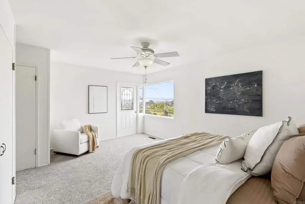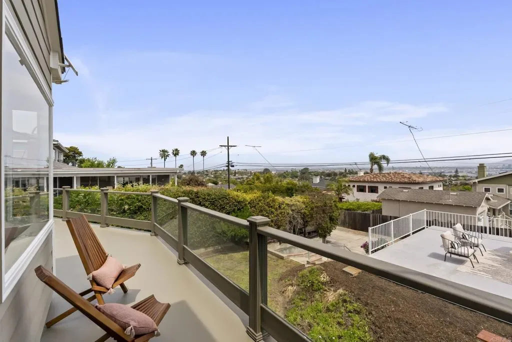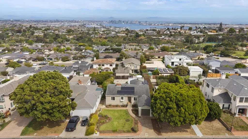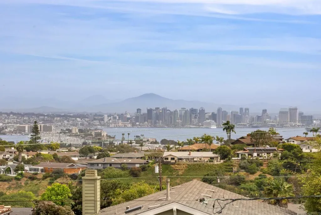 Fabulous opportunity in Point Loma with sweeping views of the bay and downtown, and walking distance to Sunset Cliffs. Start your mornings with coffee on the deck as the sun rises over the city and enjoy front-row seats for spectacular Fourth of July fireworks. Designed for effortless indoor-outdoor living, this mid-century home features two spacious decks plus a crow’s nest viewing area that takes the views to the next level. Relax in the cozy living room full of character with fireplace, wood ceiling and stunning night and day views. Embrace the Point Loma lifestyle—walking distance to groceries, coffee, Sunset Cliffs, top-rated Silver Gate Elementary school, and Point Loma Park, home to summer concerts and PL Little League. Lovingly owned by the same family for over 30 years, the home has been freshly painted and thoughtfully staged. Owned solar panels; newer AC-ready furnace, tankless water heater and retractable awning. A flexible floor plan offers the convenience of single-level living on the main floor, with a large family room and two additional bedrooms below—ideal for guests, multigenerational living, or extra space to spread out. With two garages plus RV parking area, there’s ample space for all your vehicles and toys. The upper garage offers an exciting opportunity for conversion to additional living space. With great bones and endless potential, this is your chance to create the Point Loma home of your dreams. Welcome home.
