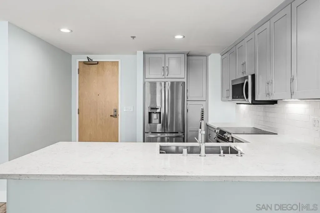 Welcome to Metrome, a contemporary mid-rise residence in the heart of Downtown San Diego, just moments from Petco Park, the Gaslamp Quarter, top dining, and the Marina District. Ideally positioned with easy access to major freeways, this location offers the perfect balance of vibrant city living and everyday convenience. This is the ONE! Beautifully upgraded, quiet interior 1-bedroom, 1-bath residence features a bright, open layout with large windows that fill the space with natural light. The home showcases modern finishes throughout, including white countertops, stainless steel appliances, upgraded laminate flooring, premium bedroom carpeting, and custom paint. Enjoy the convenience of in-unit laundry, one assigned parking space, and a private storage unit.
